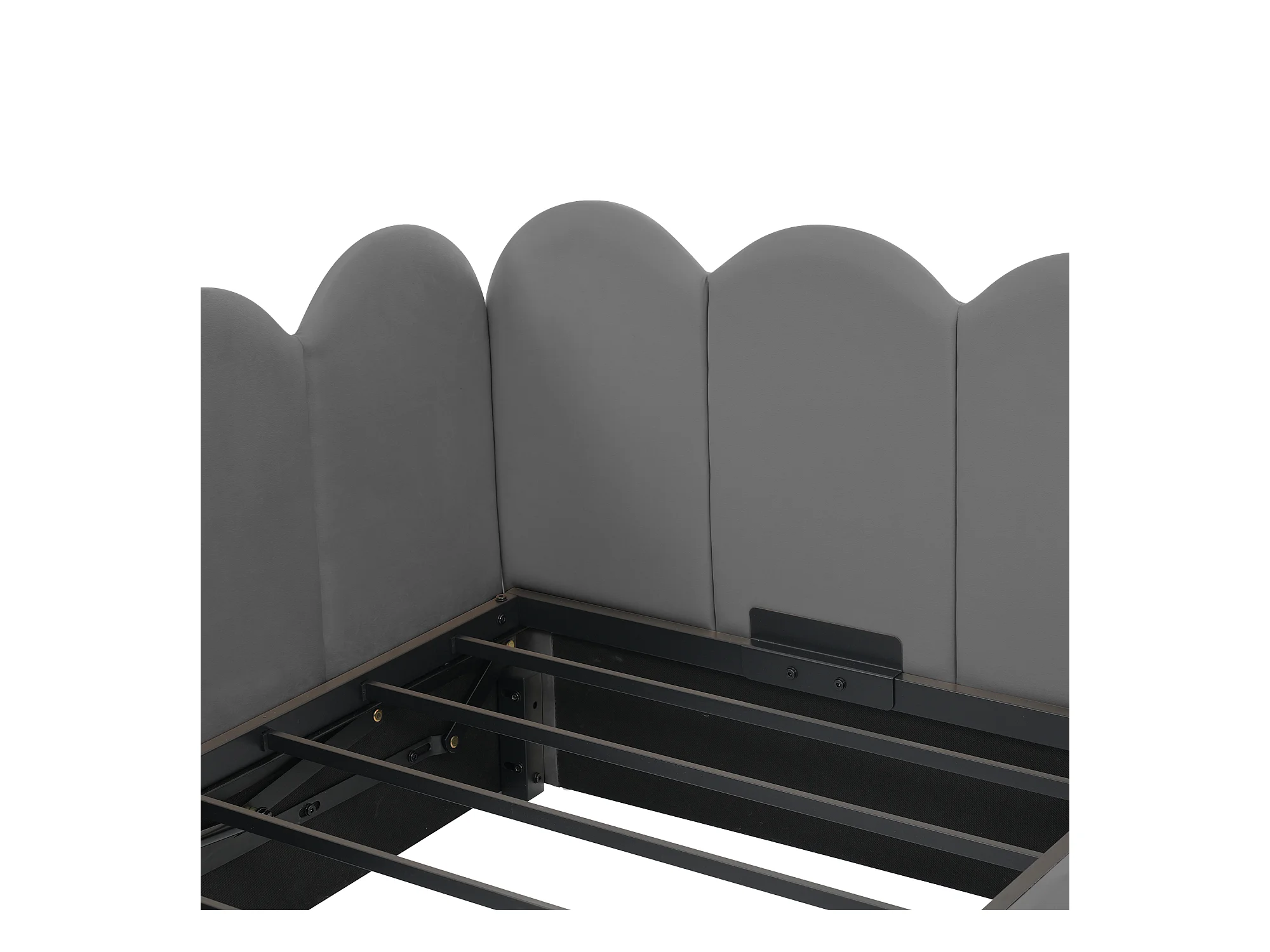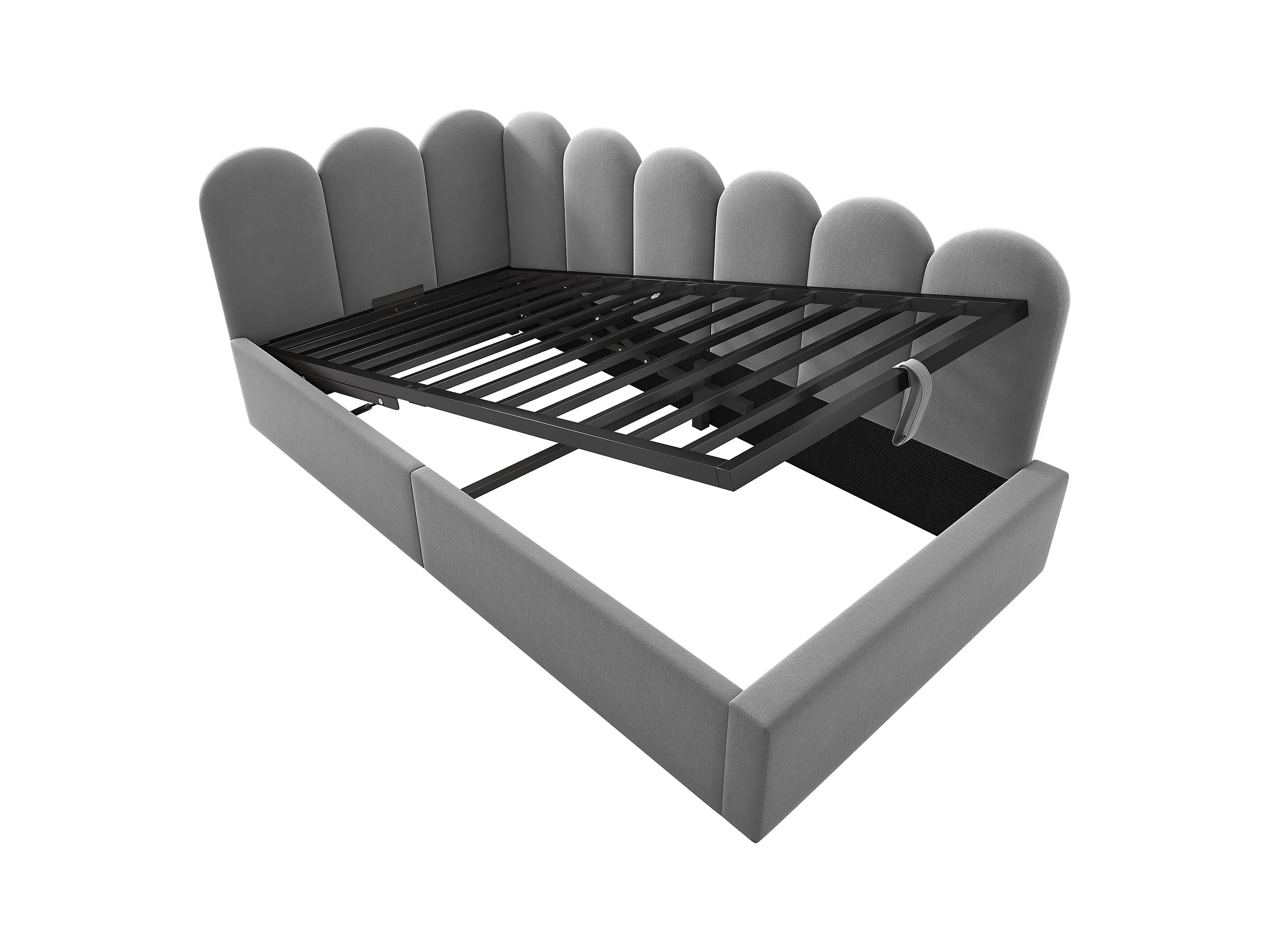 Canapé-lit 90 x 190 cm, avec espace de rangement hydraulique, métal, velours, gris