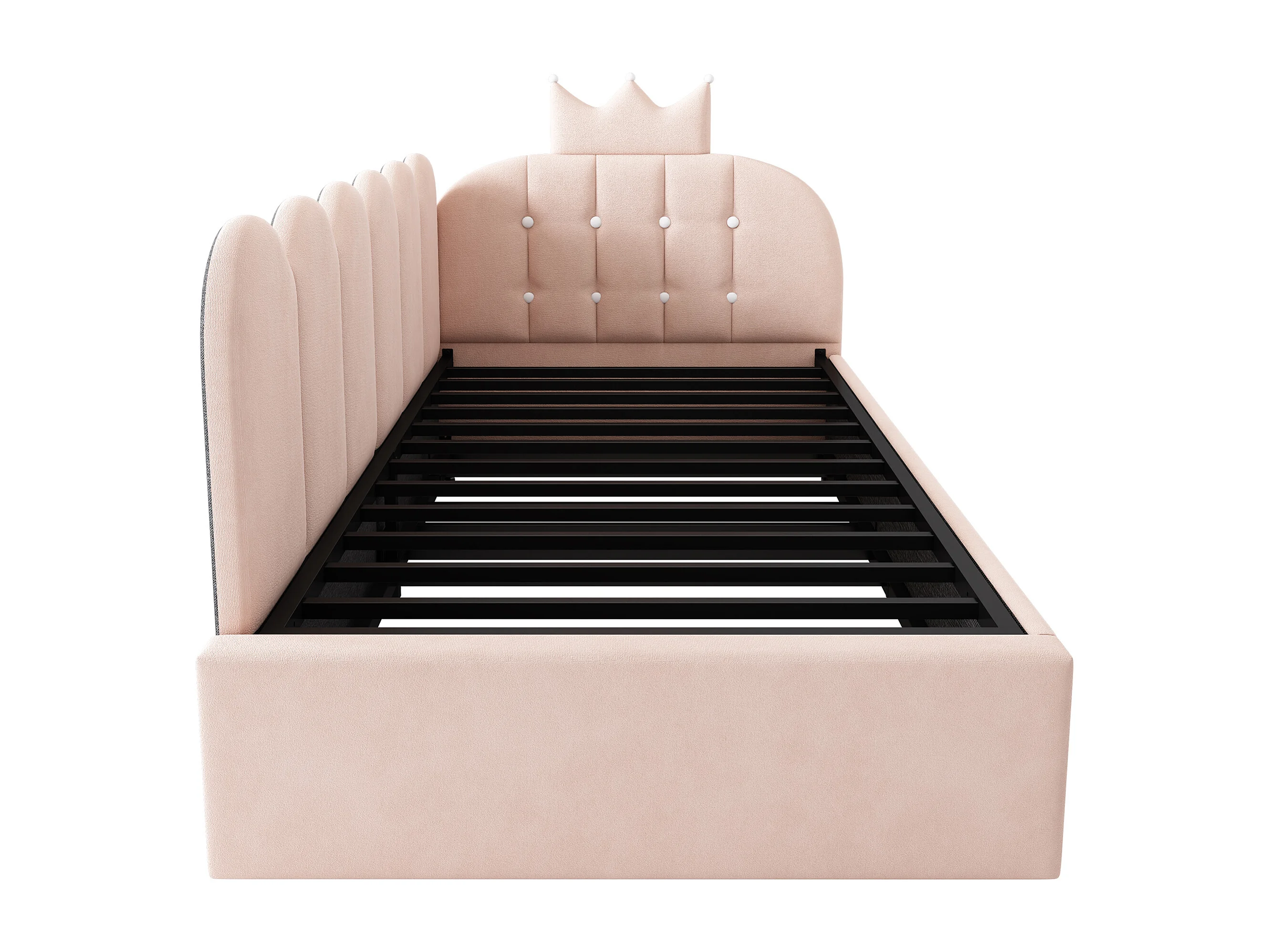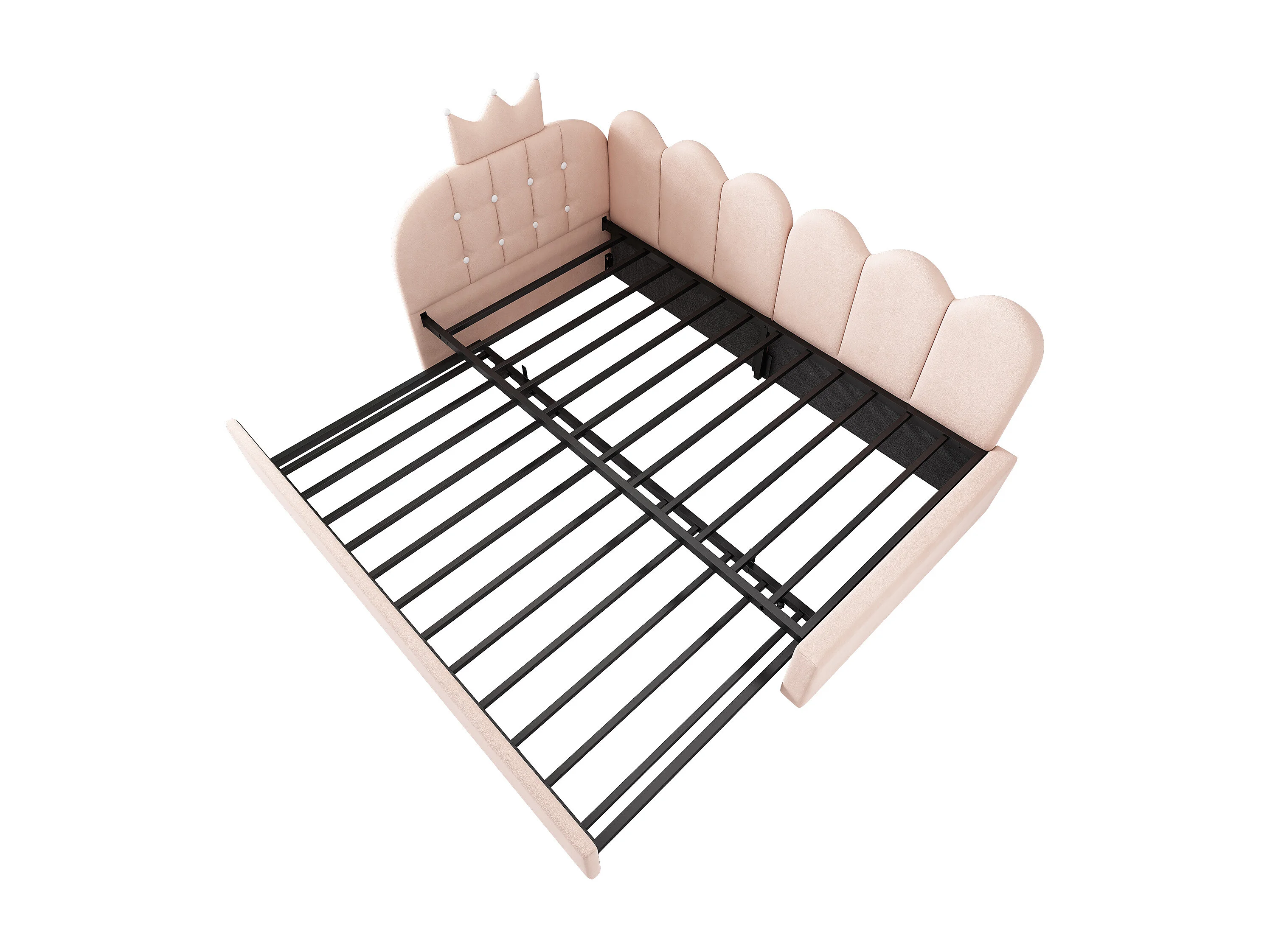 Canapé-lit 90x200 cm - avec lit gigogne 90x190 cm - comporte une décoration en forme de couronne - Velours - Rose (sans matelas)