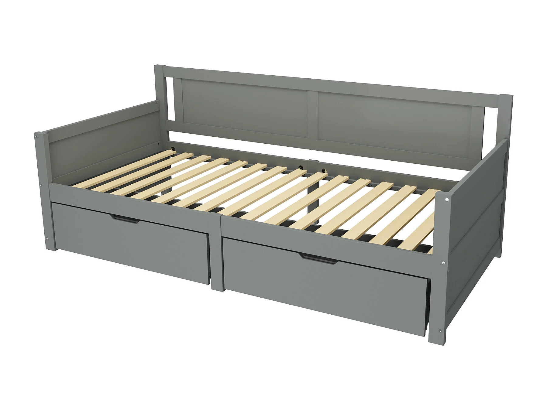 Canapé-lit 90x200 cm gris en bois massif avec 2 compartiments de rangement – lit pour enfants et adolescents, solide et pratique