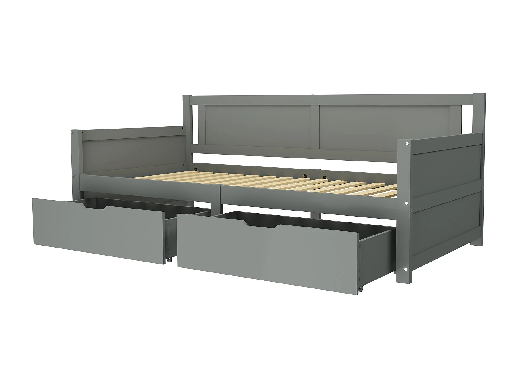 Canapé-lit 90x200 cm gris, lit simple avec deux rangements ouverts, cadre en bois massif durable