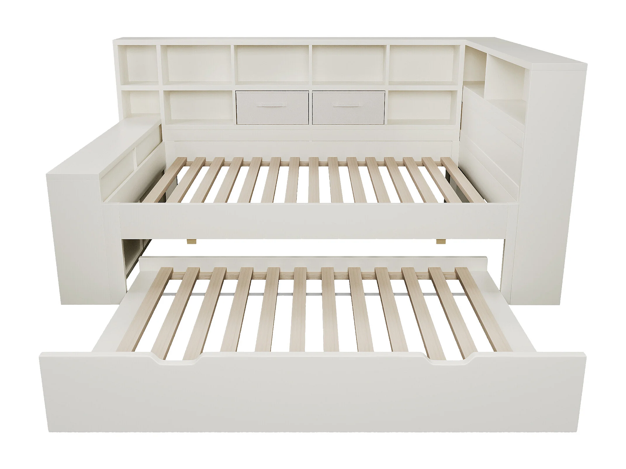 Canapé-lit 90x200cm - avec lit gigogne - avec USB/Type-C - avec espace de rangement - bois massif + panneaux de particules - blanc