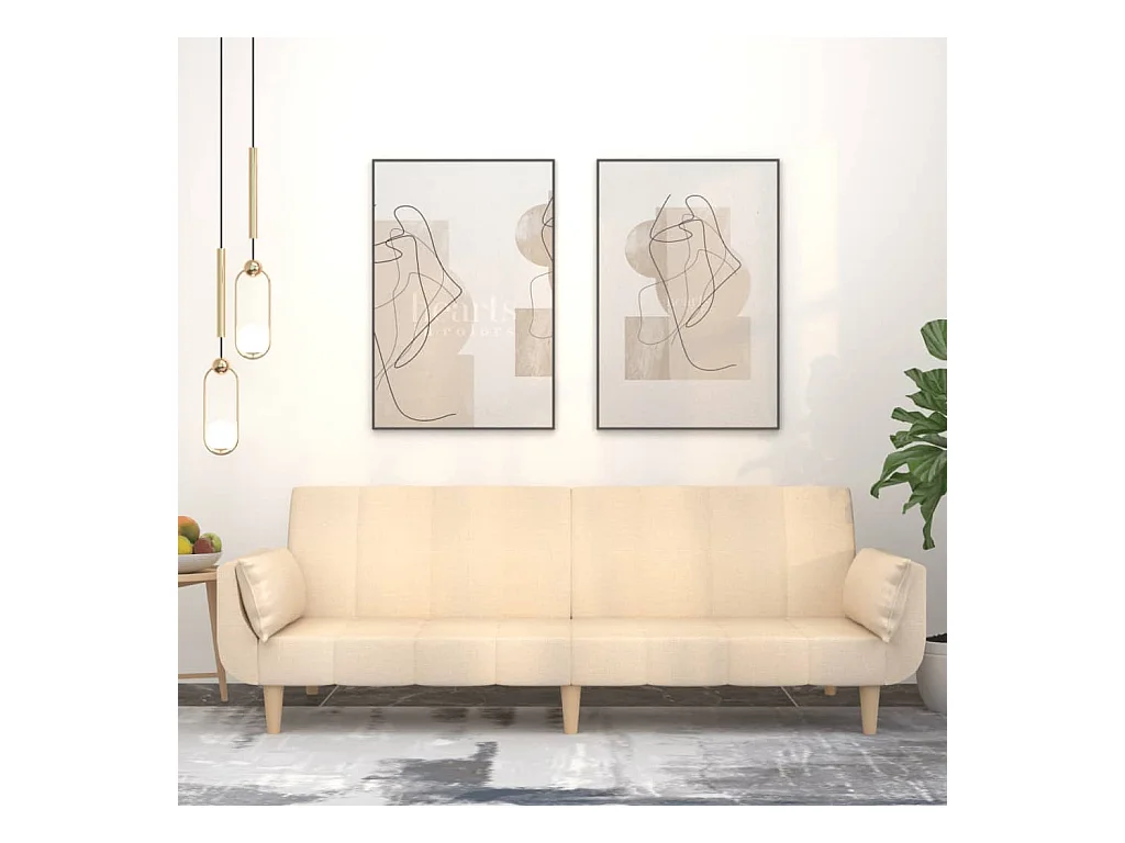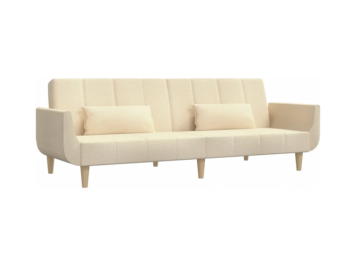 Canapé-lit à 2 places avec deux oreillers crème tissu