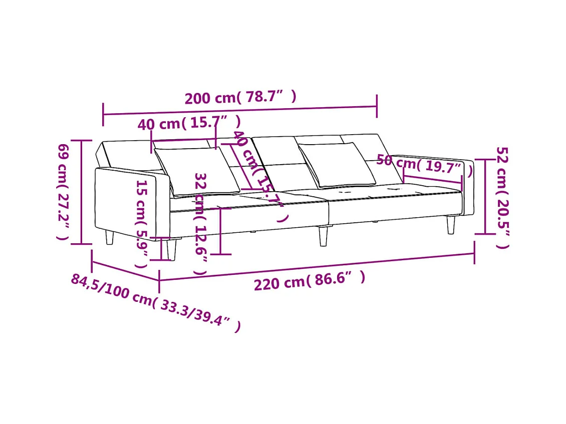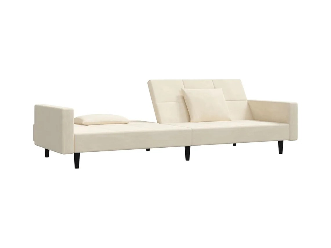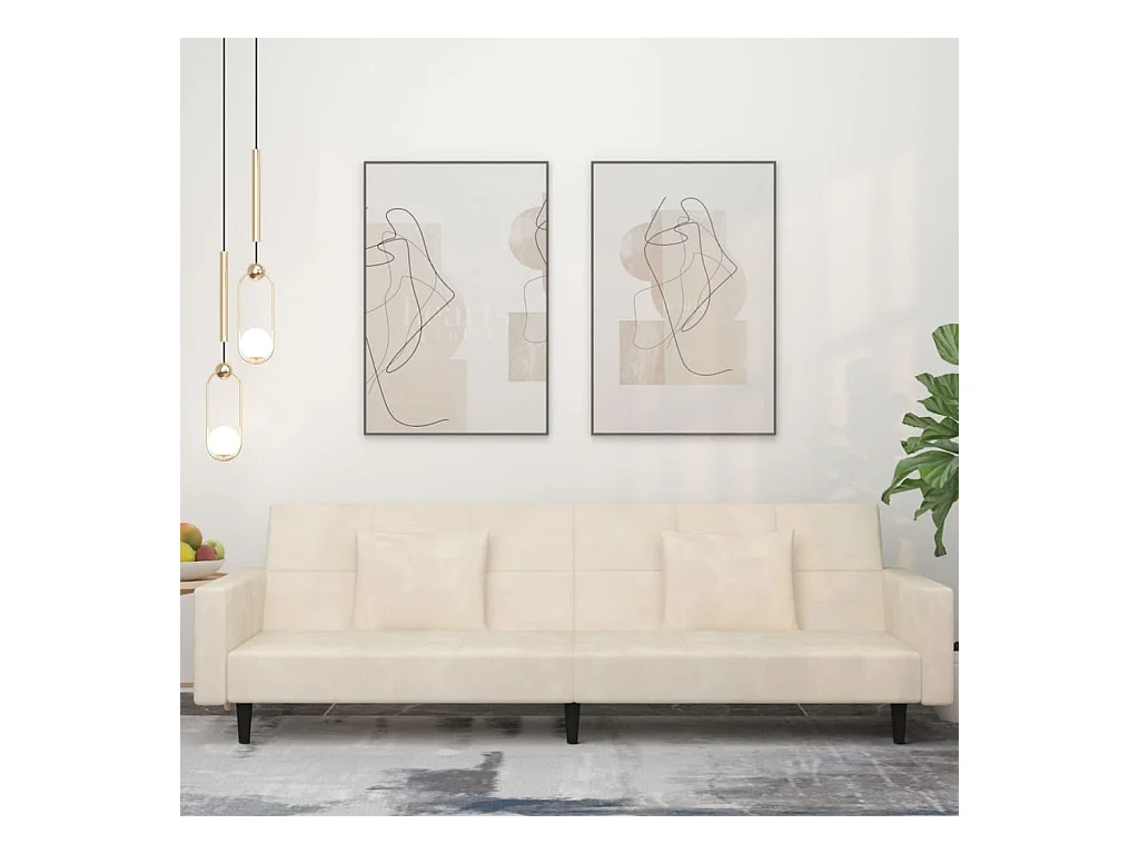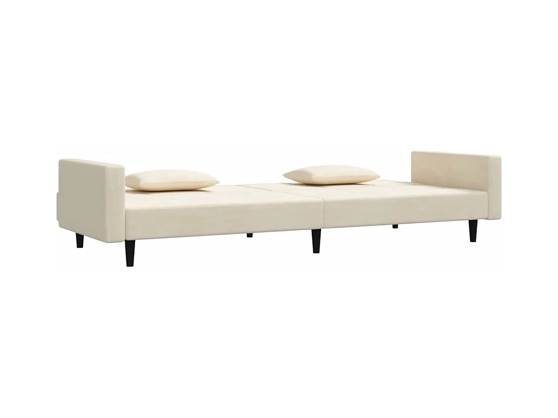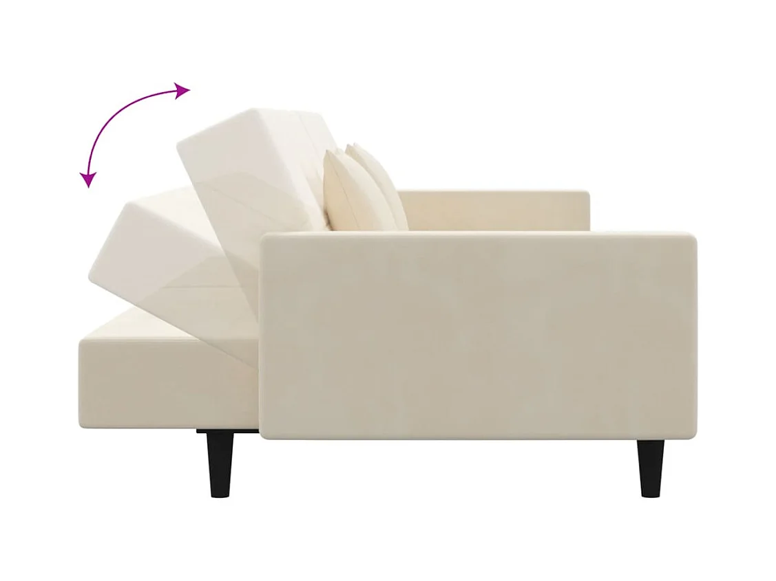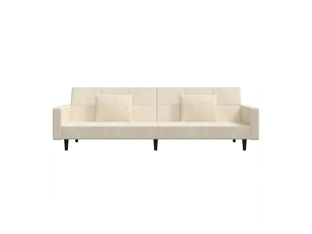 Canapé-lit à 2 places avec deux oreillers crème velours