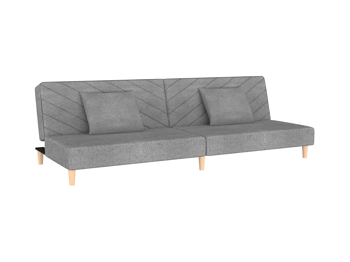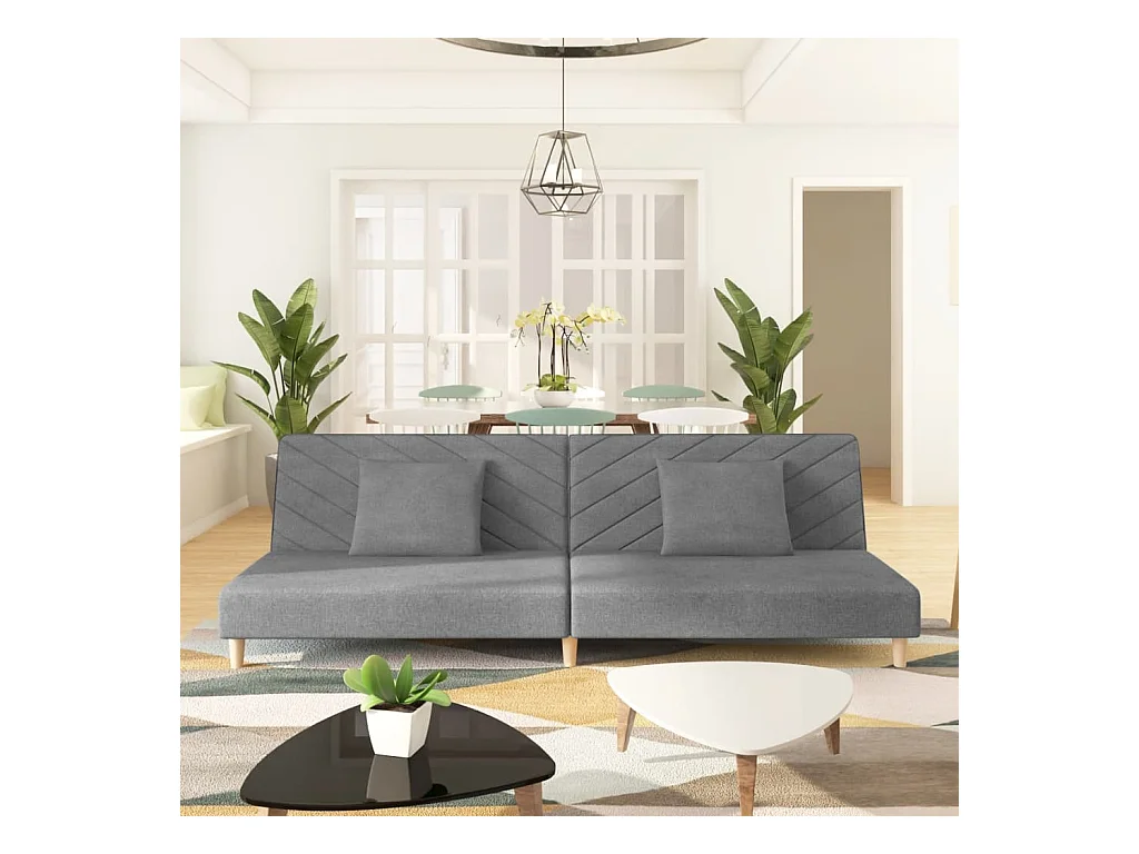 Canapé-lit à 2 places avec deux oreillers gris clair tissu