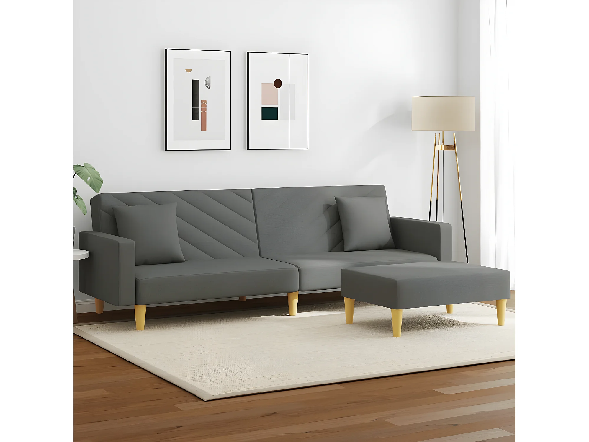 Canapé-lit à 2 places avec oreillers et repose-pied gris foncé