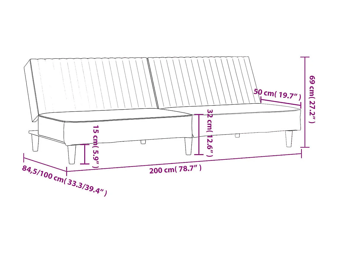 Canapé-lit à 2 places gris clair velours