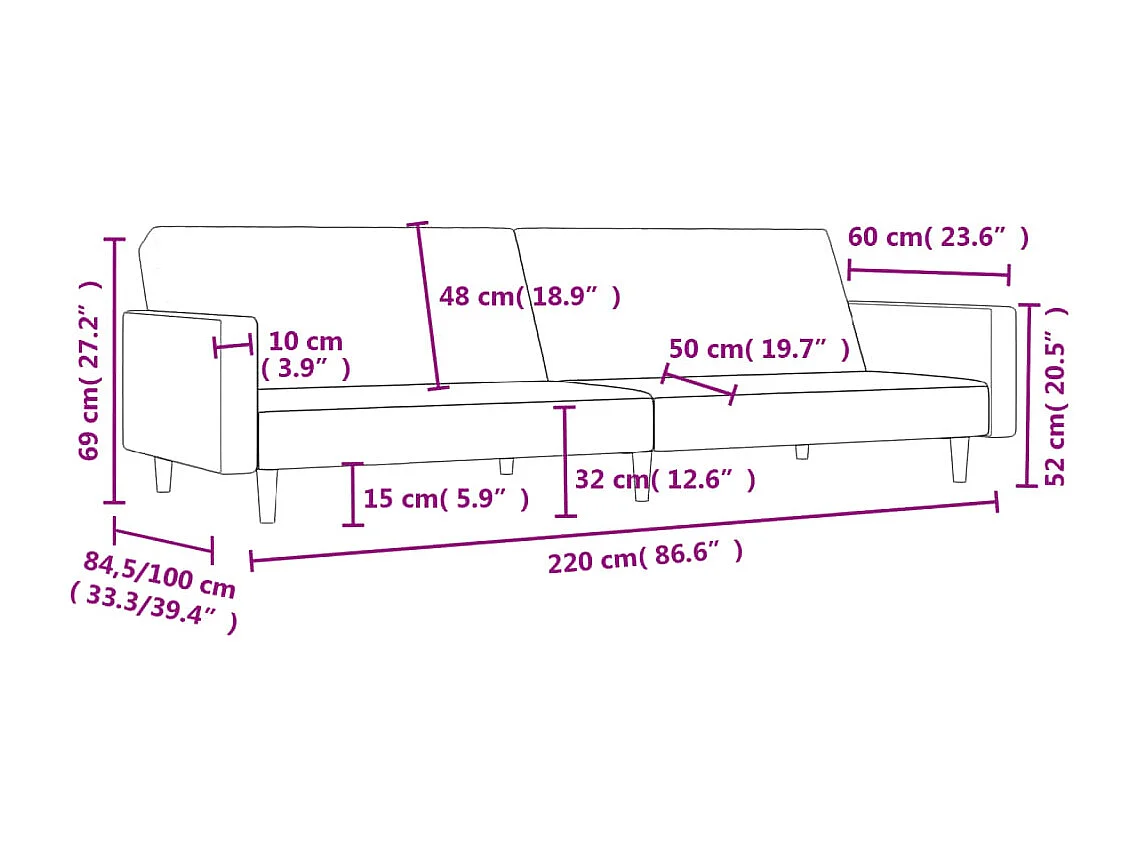 Canapé-lit à 2 places gris foncé tissu