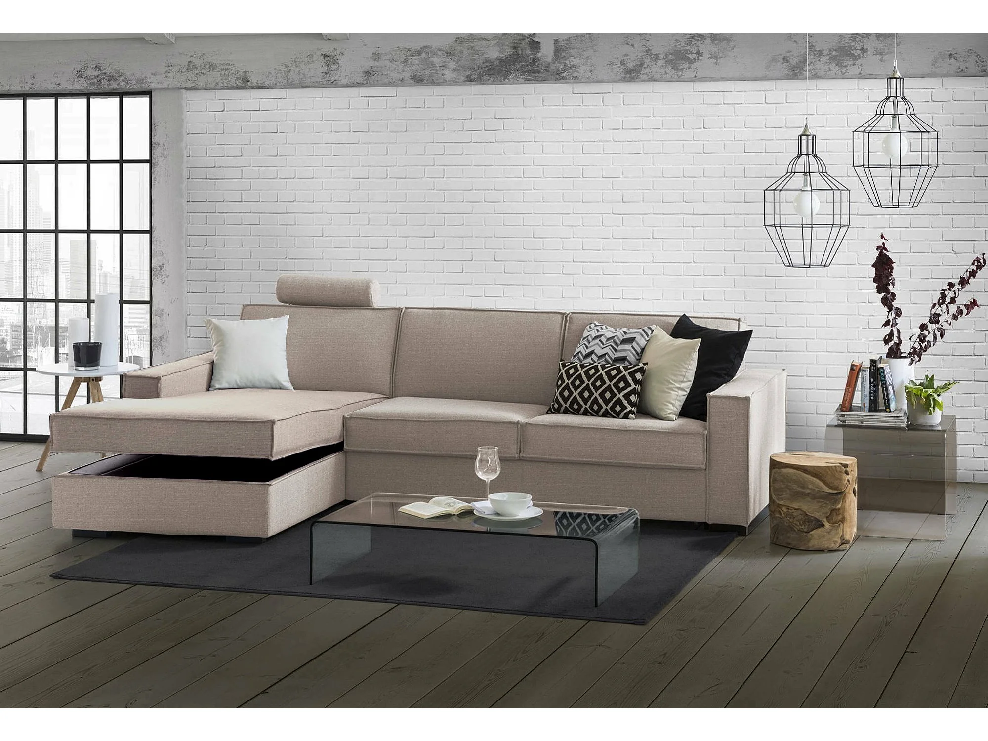 Canapé-lit Adima, Canapé d'angle, 100% Made in Italy, Canapé avec ouverture pivotante, Péninsule de rangement gauche, avec accoudoirs fins, Cm 260x95h90, Taupe