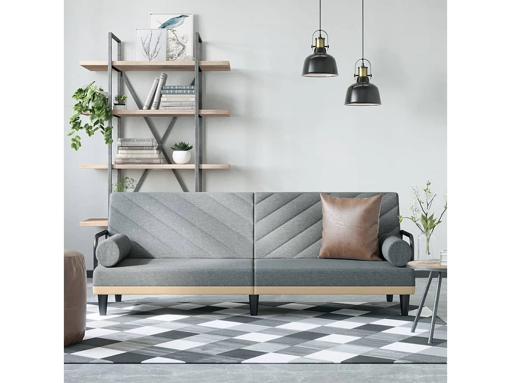 Canapé-lit avec accoudoirs gris clair tissu