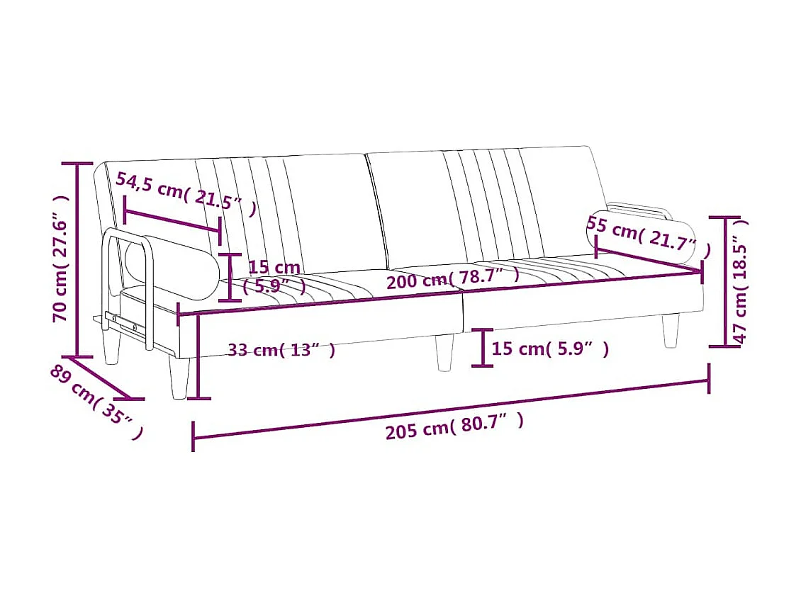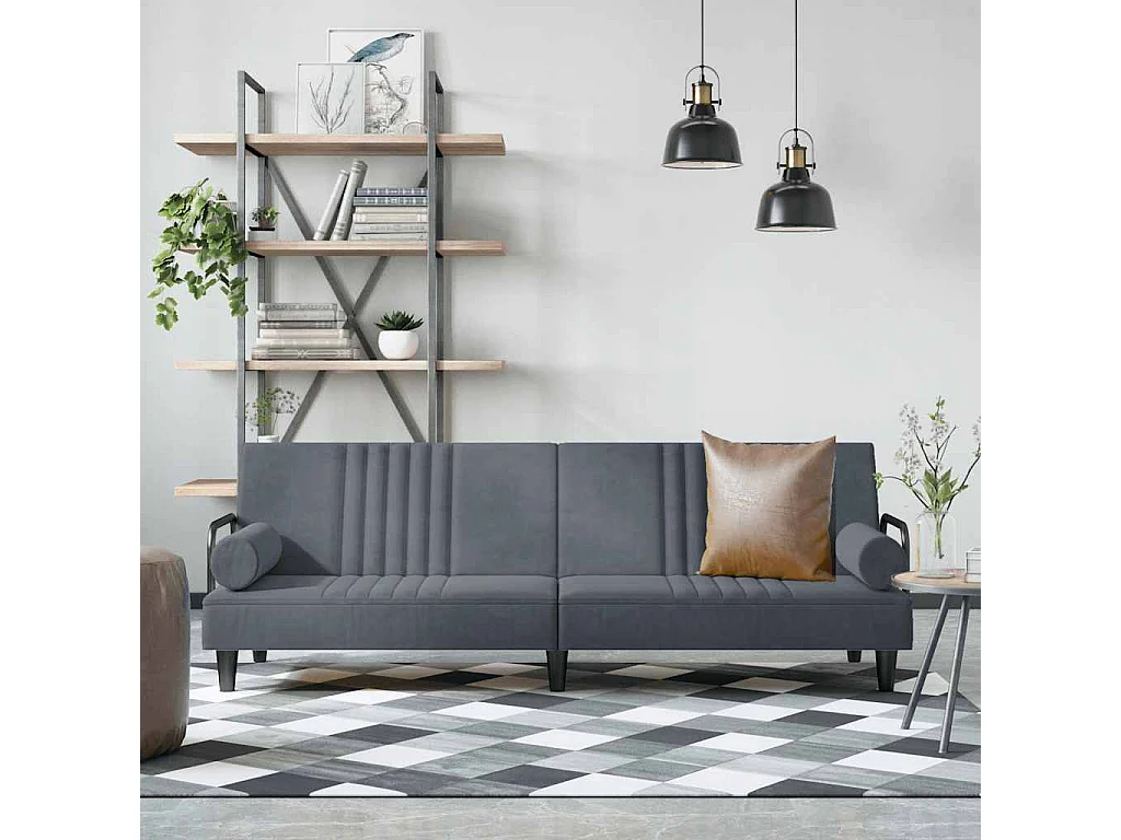 Canapé-lit avec accoudoirs gris foncé velours
