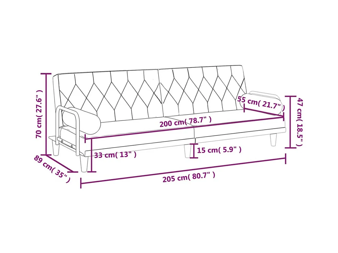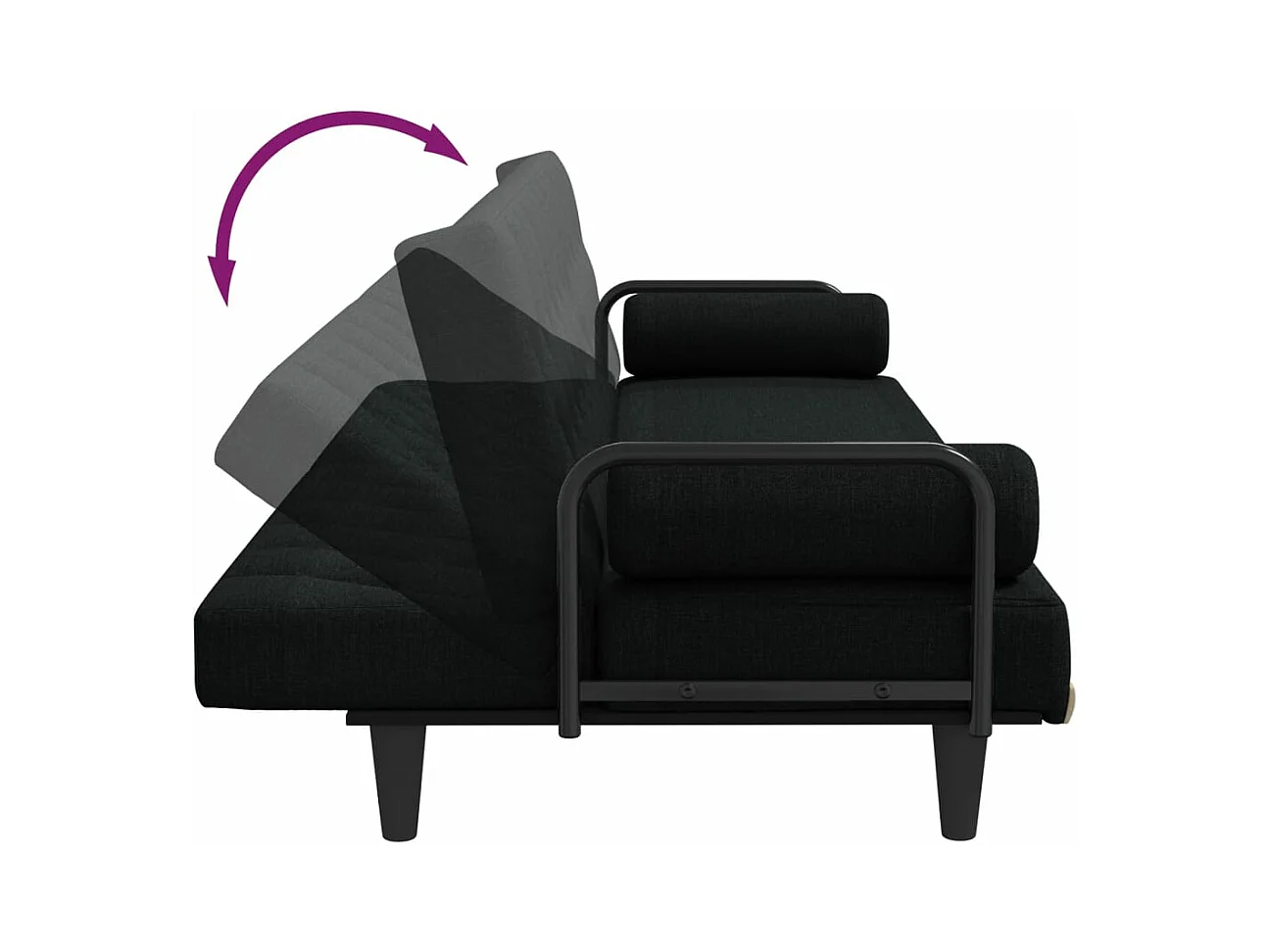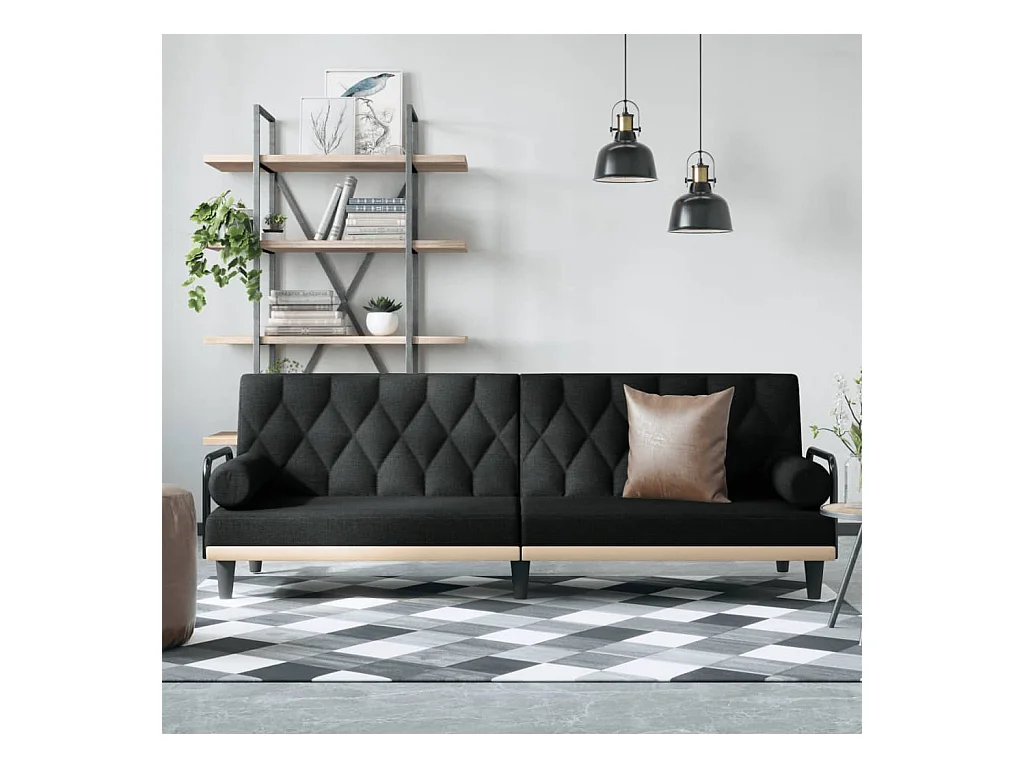 Canapé-lit avec accoudoirs noir tissu