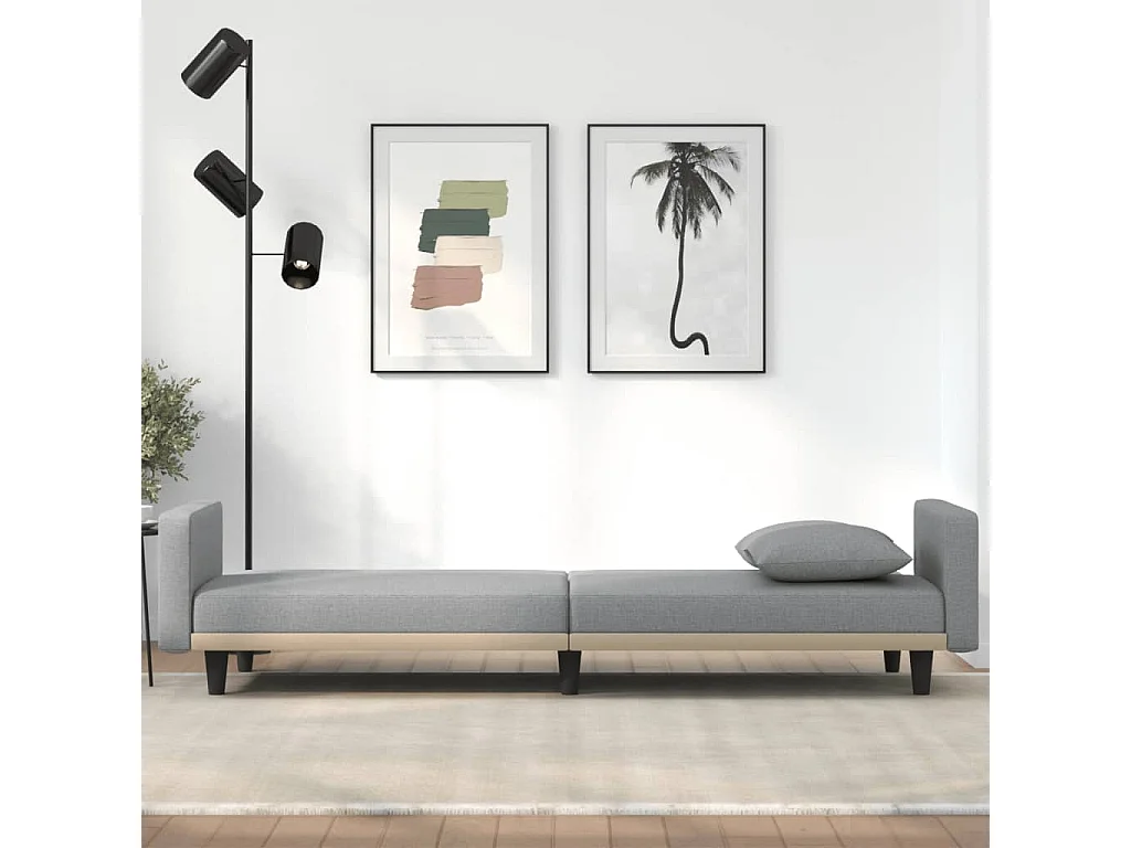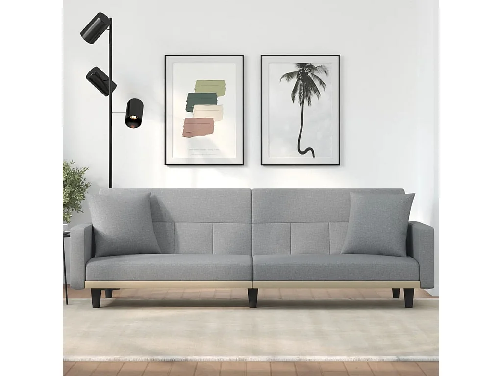 Canapé-lit avec coussins gris clair tissu