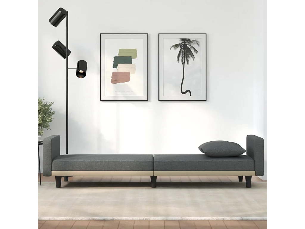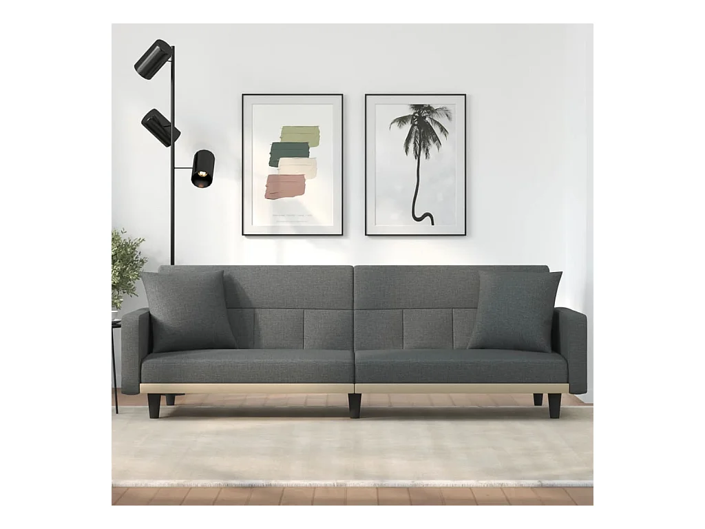 Canapé-lit avec coussins gris foncé tissu