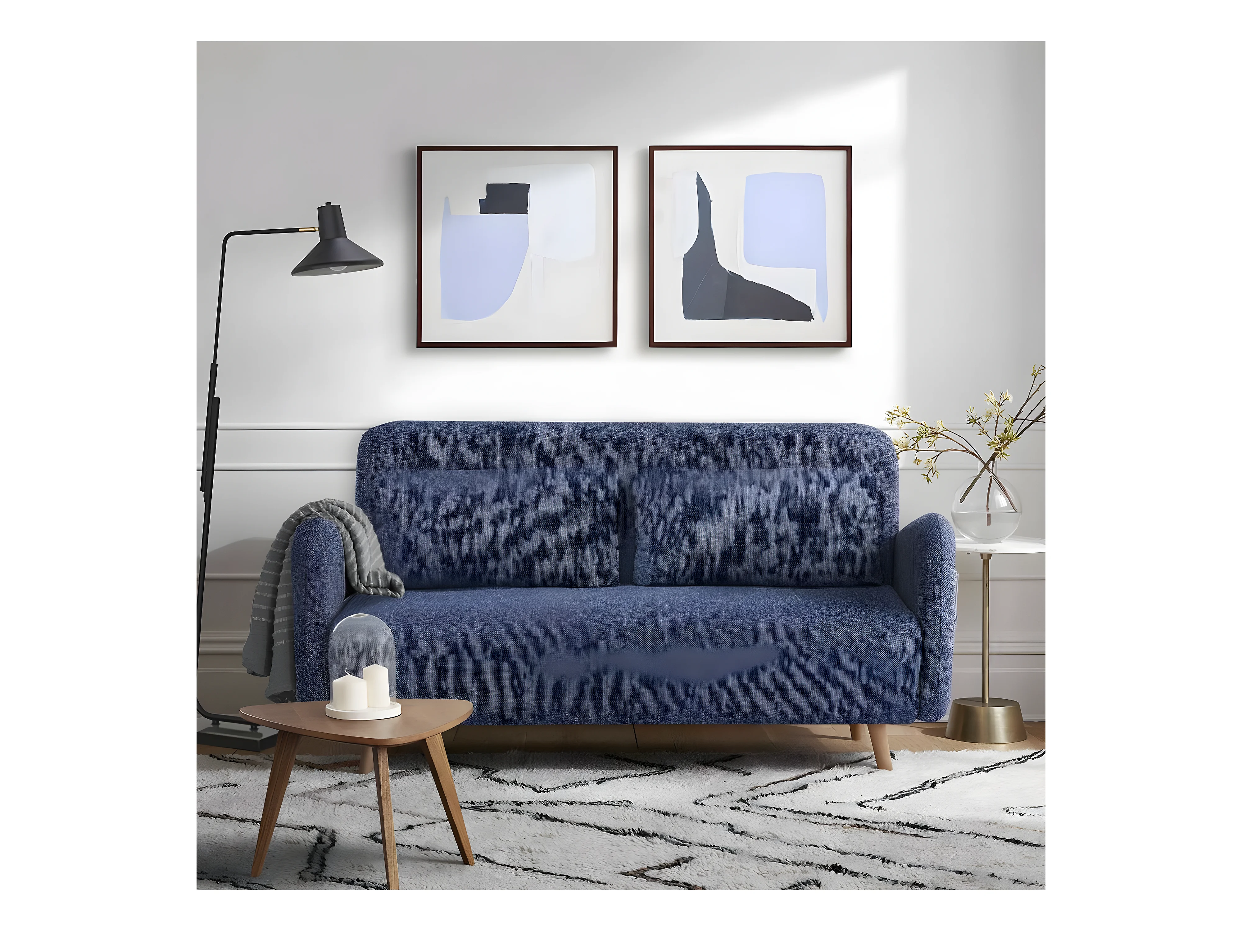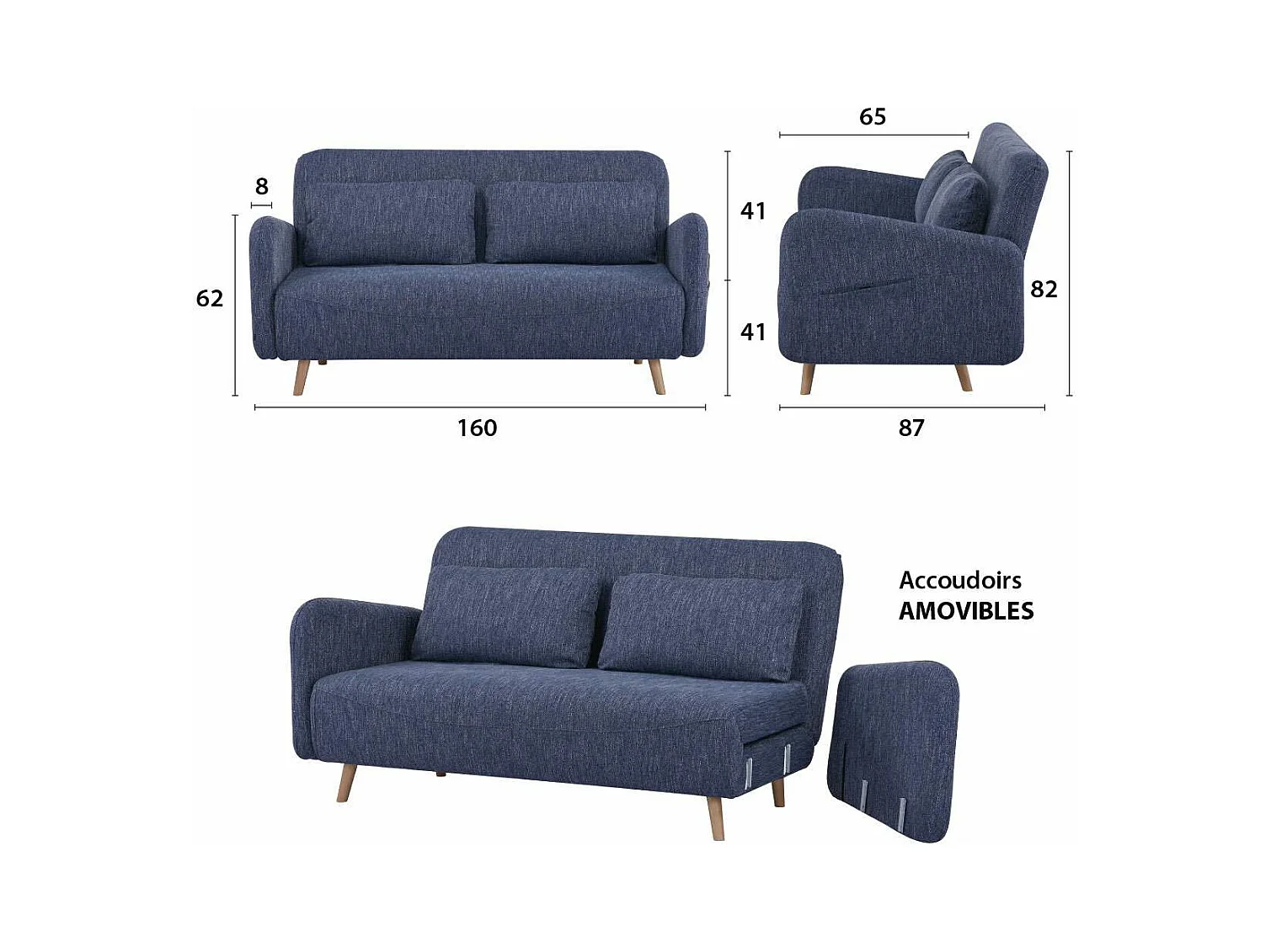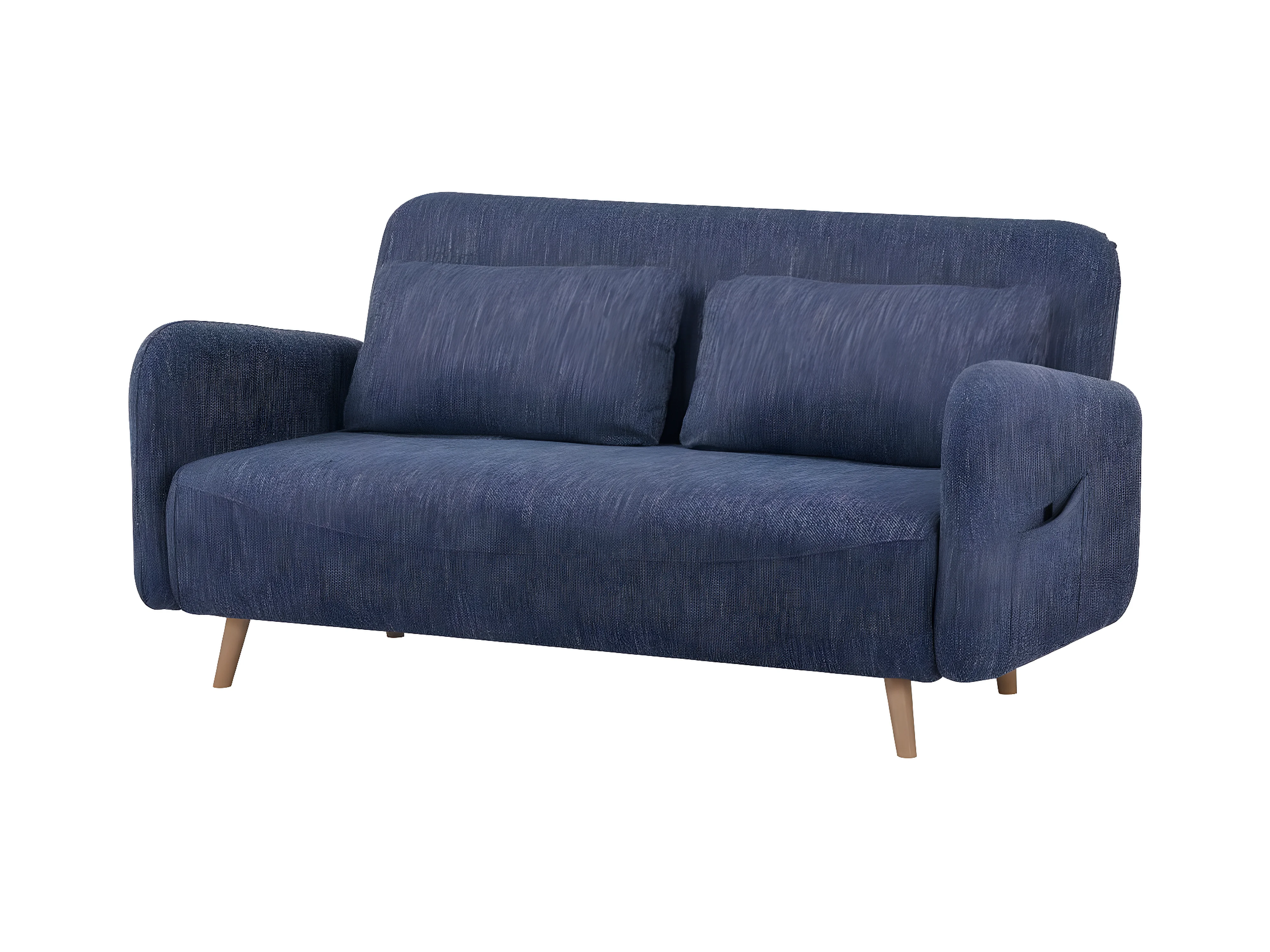 Canapé-lit BZ 2 places pour couchage d’appoint taille 145 x 190 cm en tissu bleu et pieds en bois massif - ARI