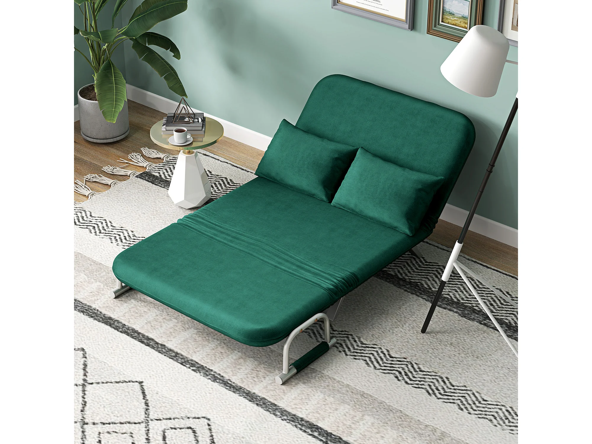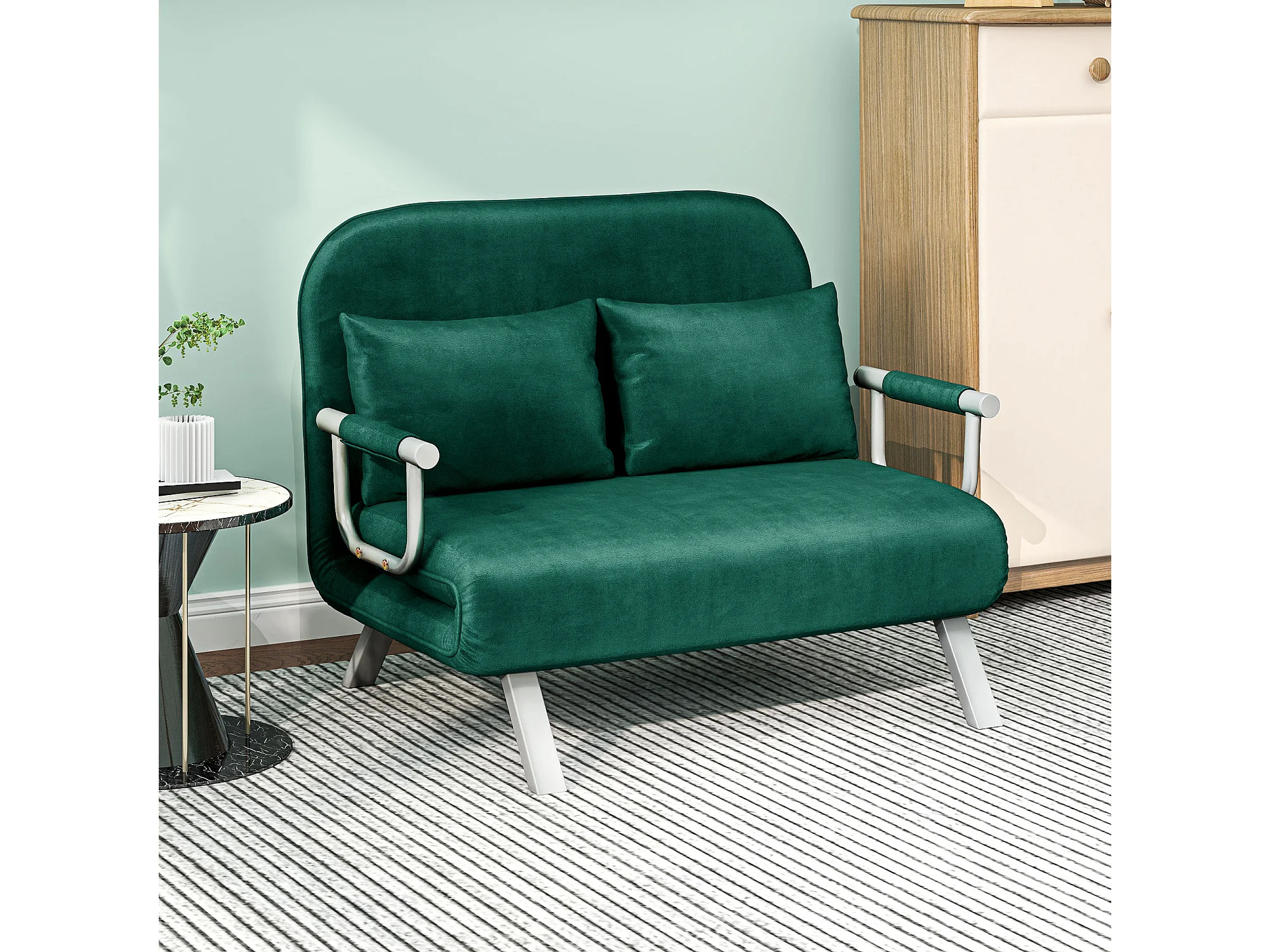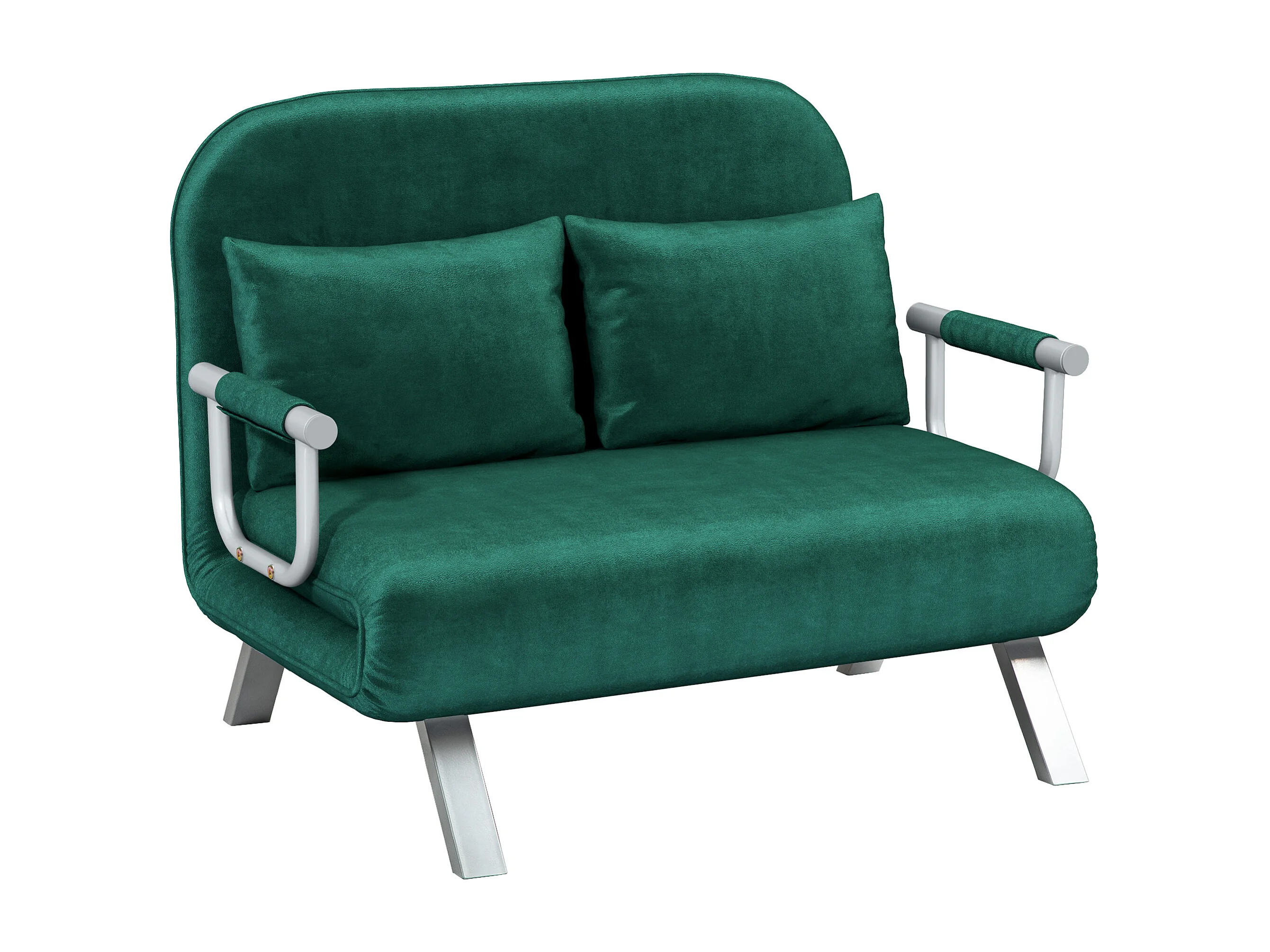 Canapé-lit canapé convertible 2 places déhoussable grand confort 2 coussins fournis pieds accoudoirs métal suède vert émeraude