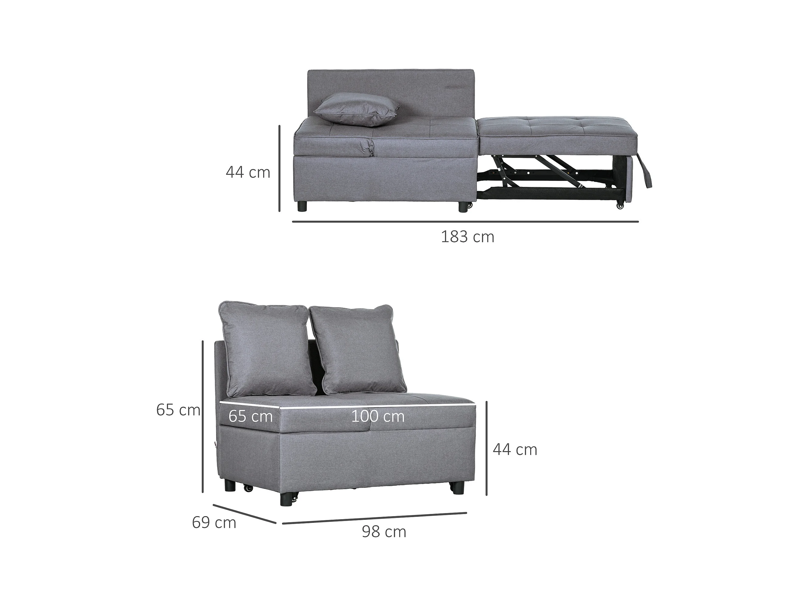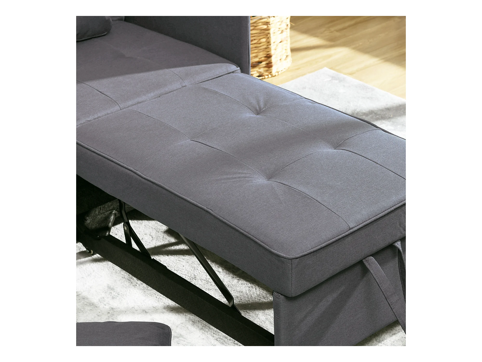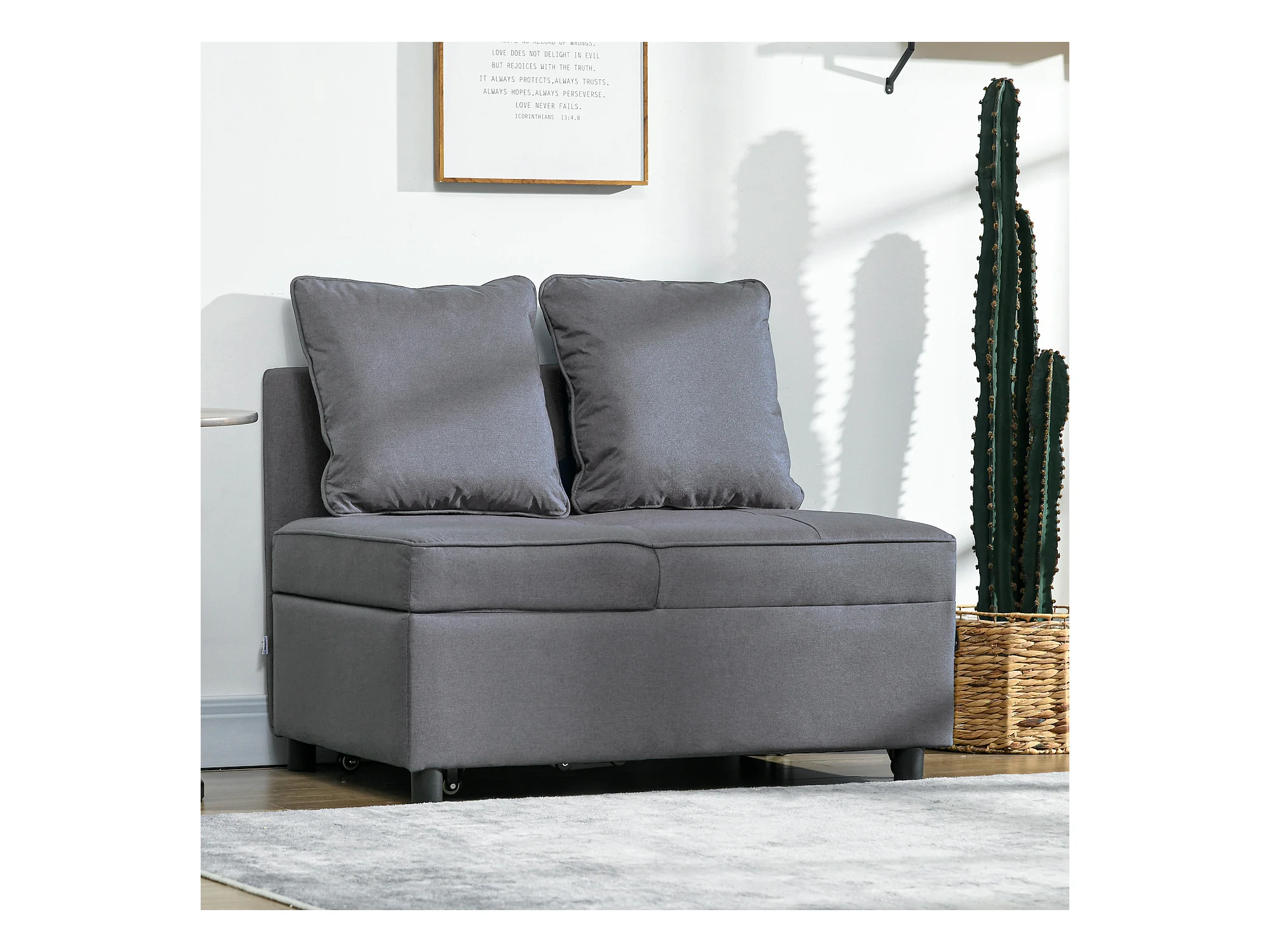 Canapé-lit canapé convertible dossier inclinable 2 coussins fournis assise effet capitonné tissu gris