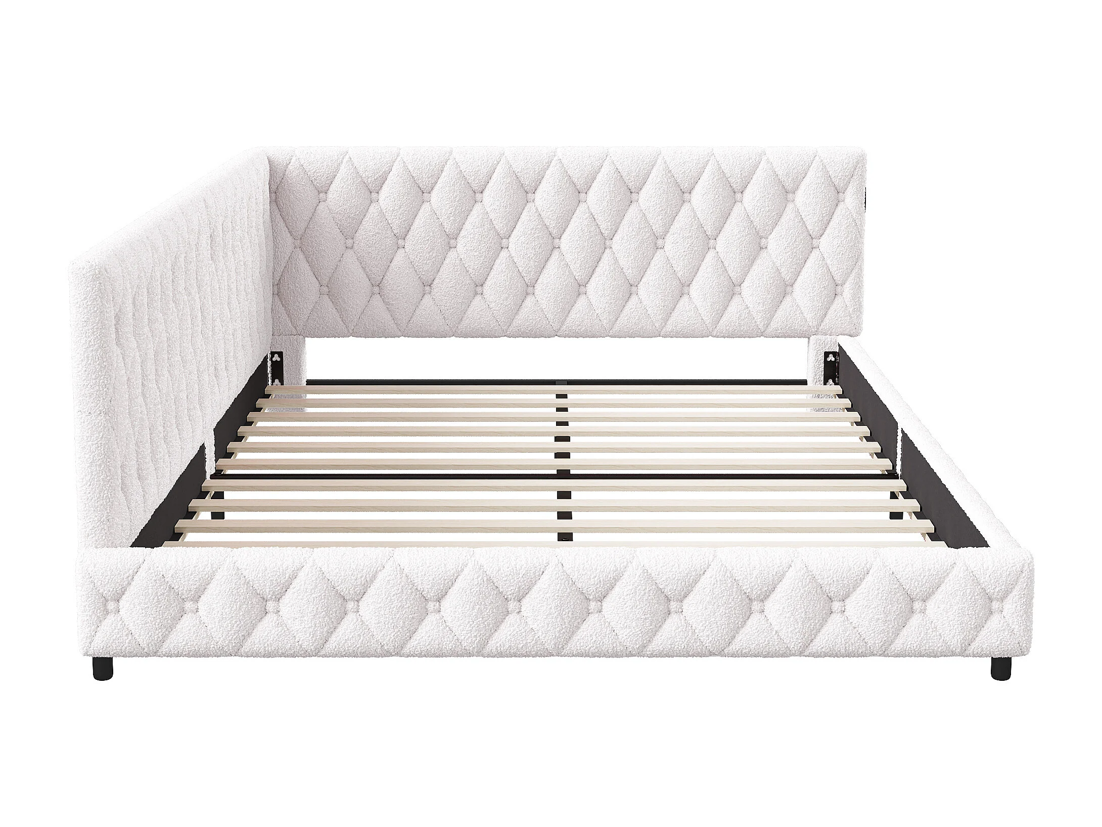 Canapé-lit capitonné 140x200cm avec bande LED et fonction de chargement - lit avec tête de lit et sommier à lattes - blanc