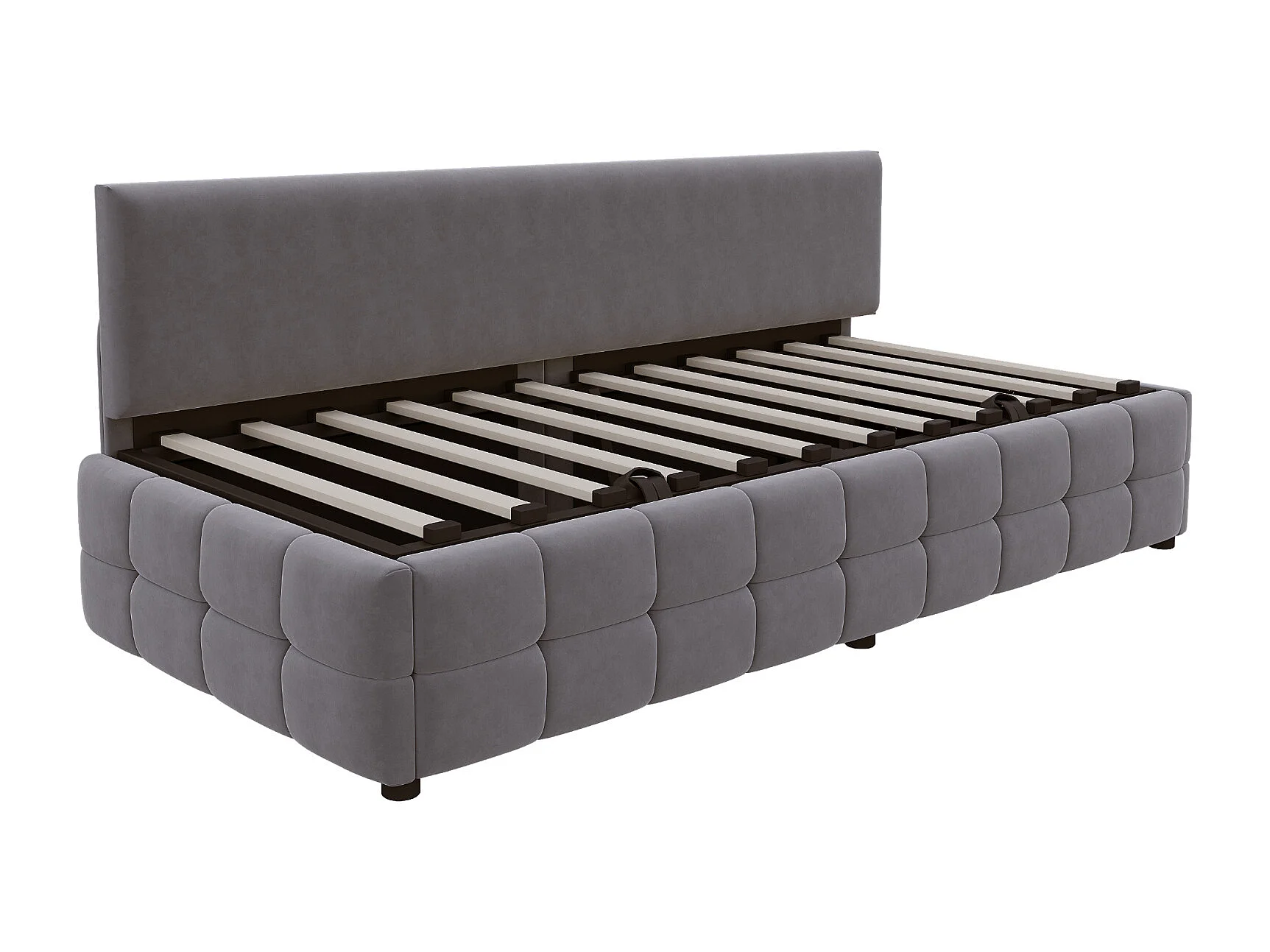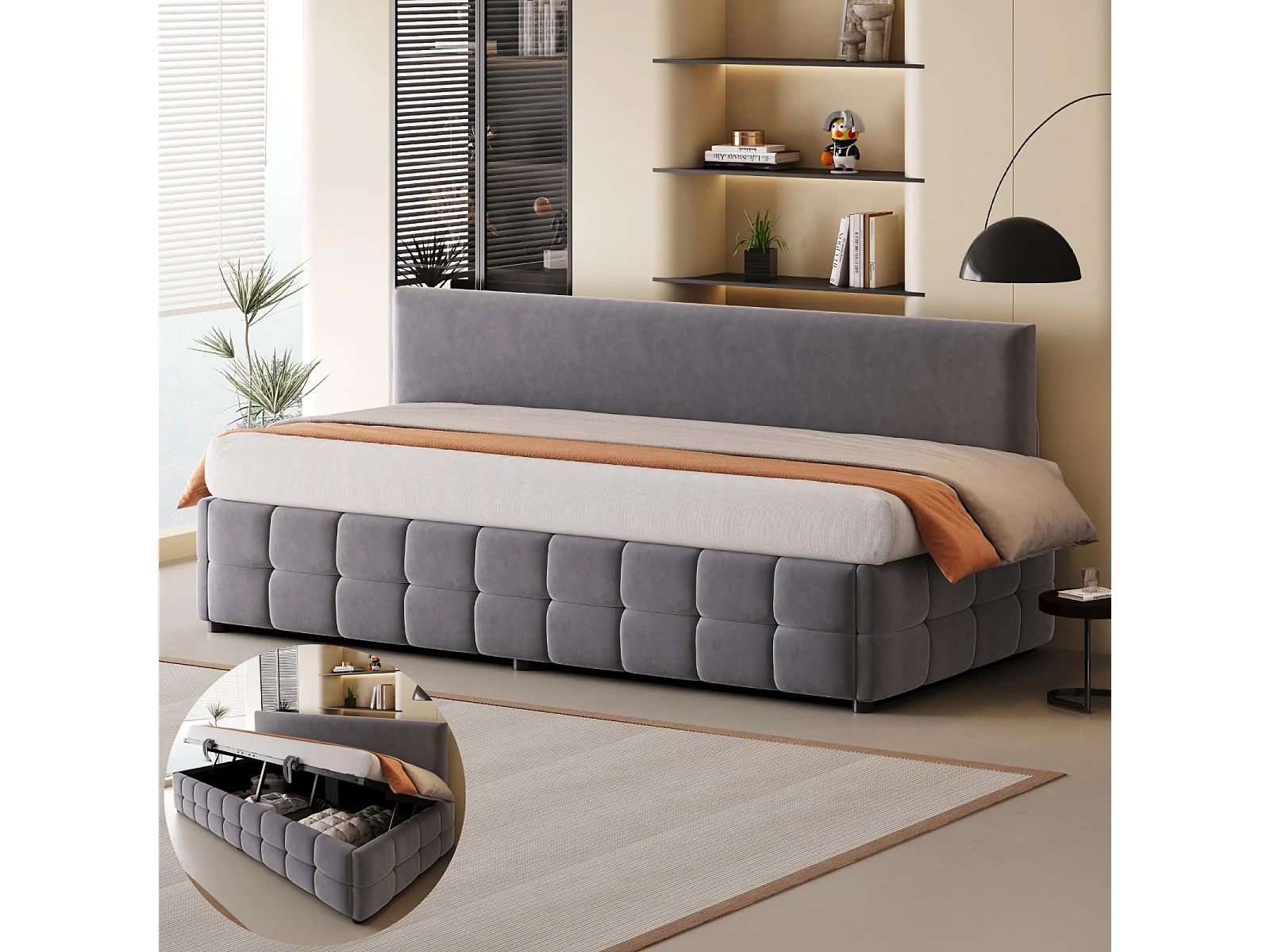 Canapé-lit capitonné 90 x 200 cm - avec rangement hydraulique - dossier sans accoudoirs - lit simple - velours - Gris foncé