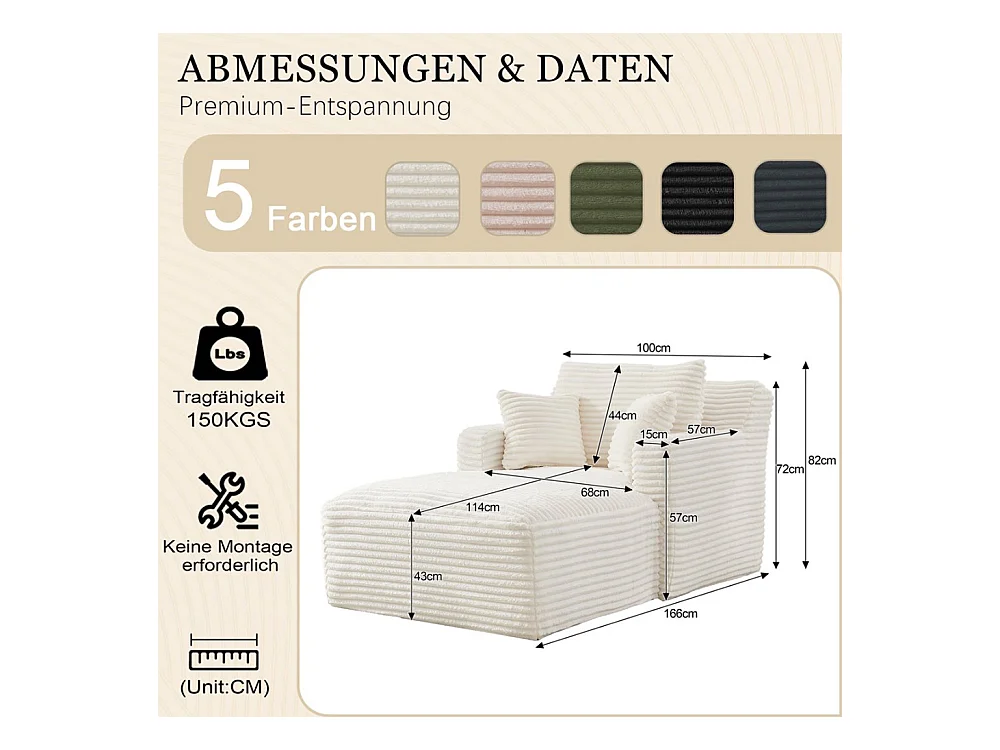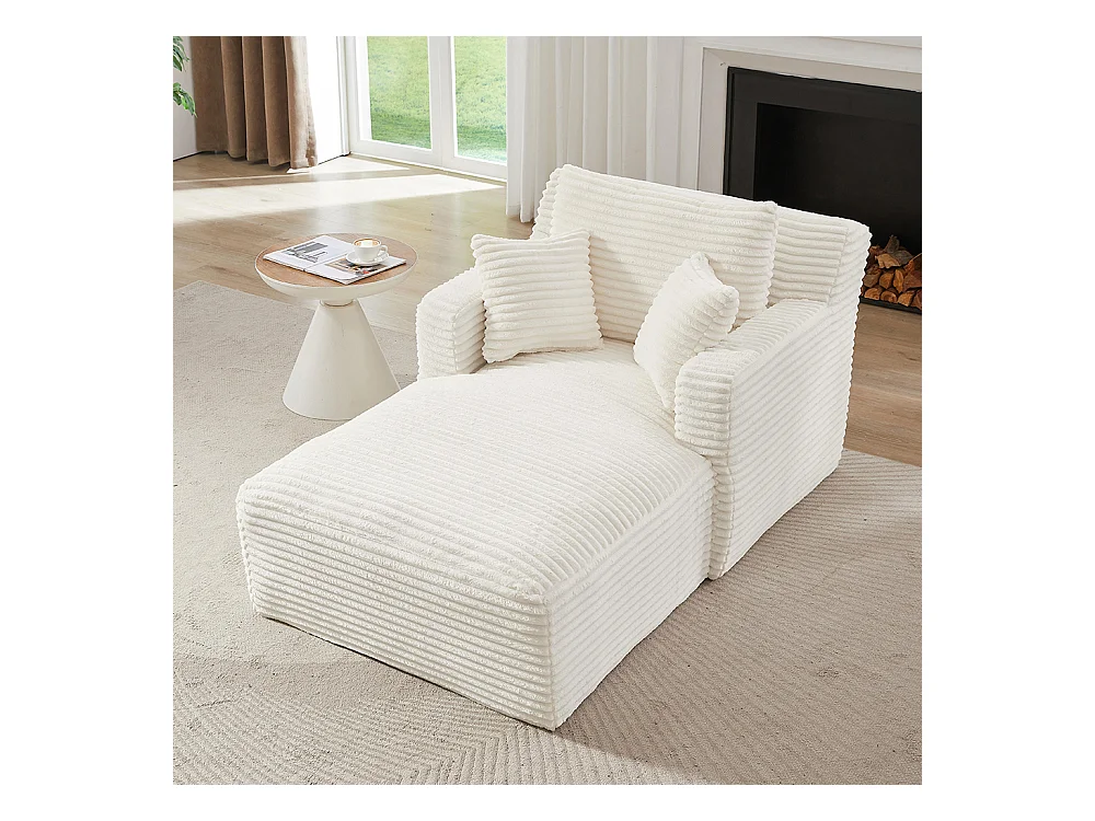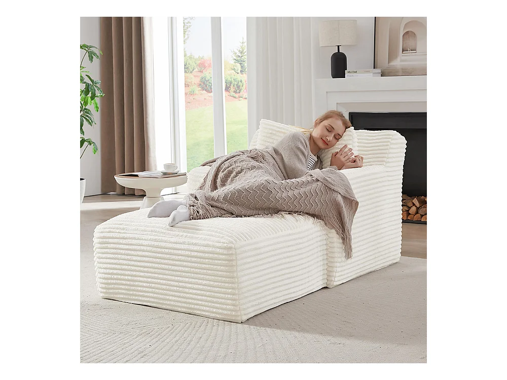 Canapé lit chaise longue moderne velours côtelé confortable fauteuil sans montage salon bureau appartement blanc