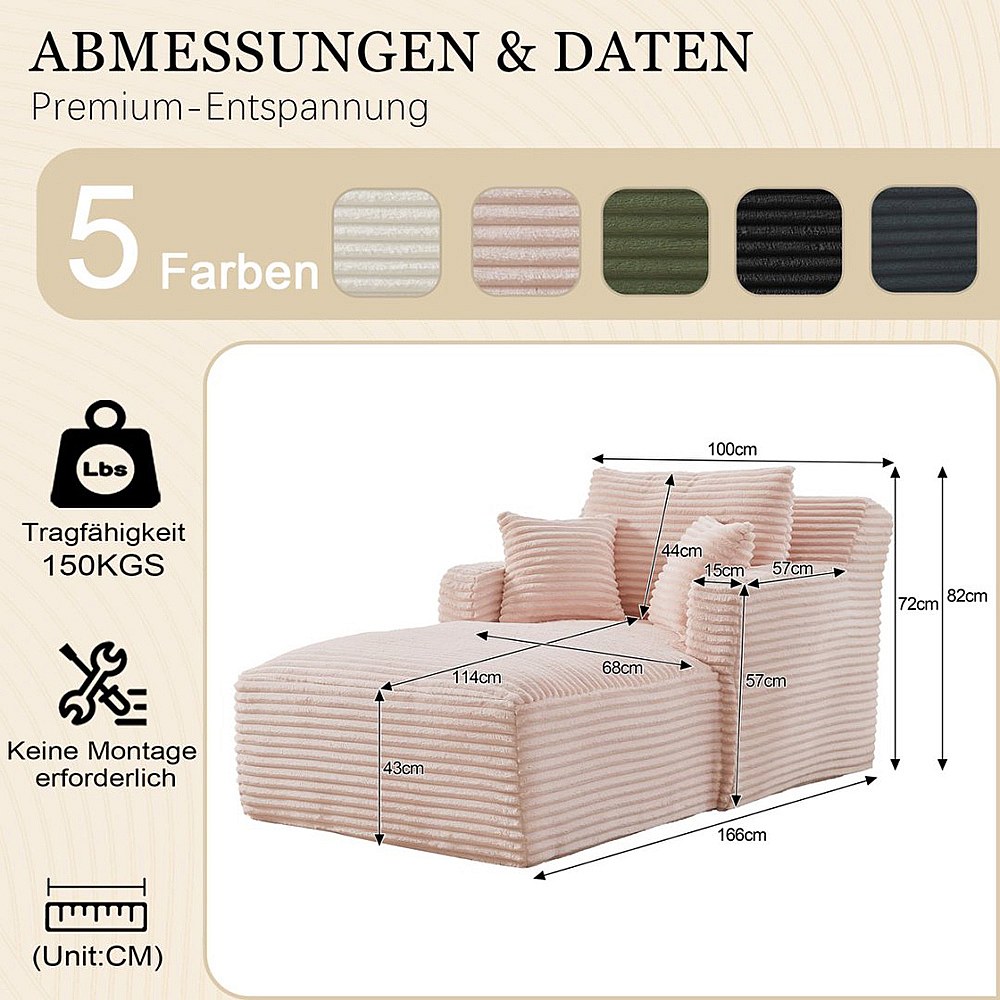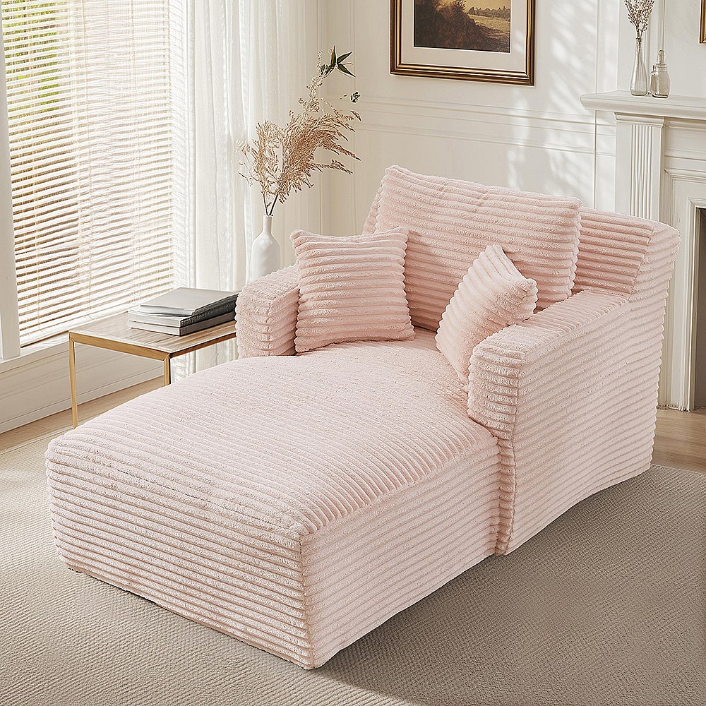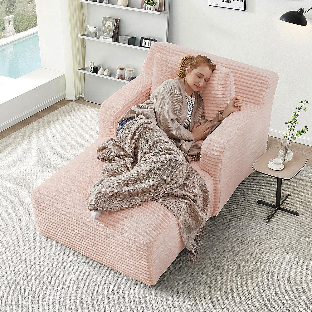 Canapé lit chaise longue moderne velours côtelé confortable fauteuil sans montage salon bureau appartement rose