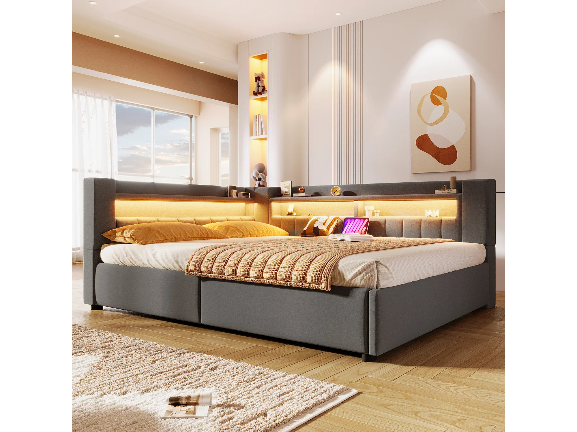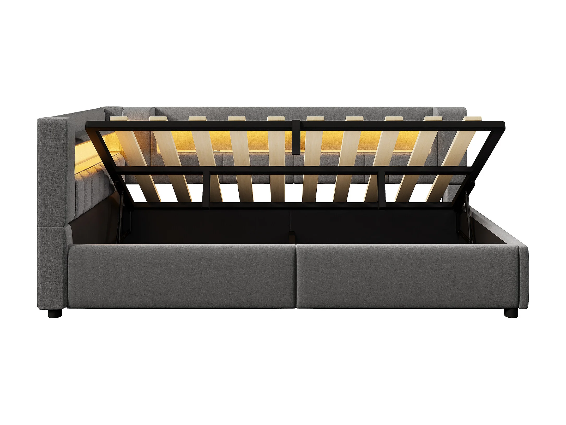 Canapé-lit coffre 140 x 200 cm - avec port USB Type-C - avec éclairage LED - gris (matelas non inclus)