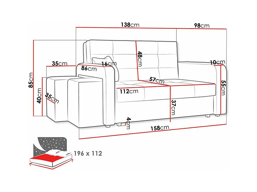 Canapé convertible Columbus 157, Boîte de literie, 85x158x98cm