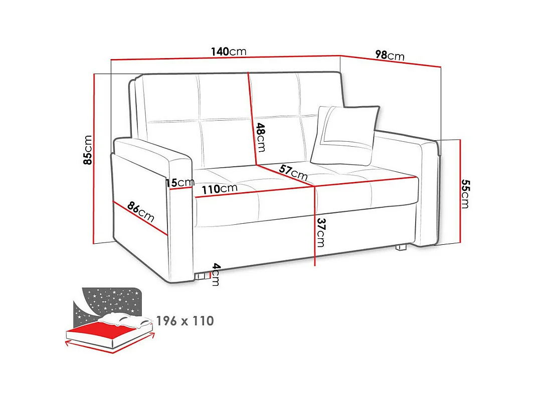 Canapé convertible Columbus 174, Boîte de literie, 85x140x98cm