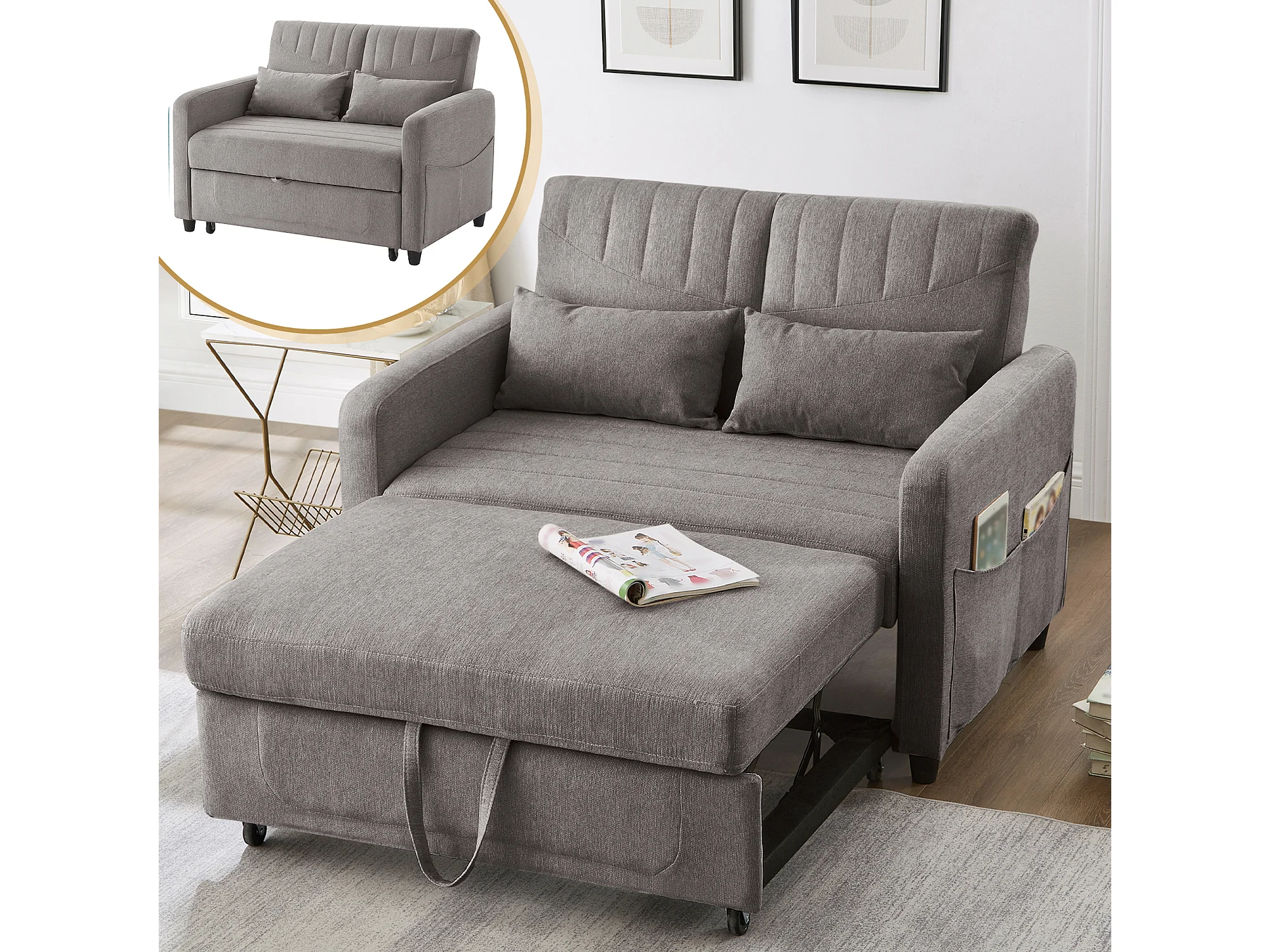 Canapé-lit Confort espace optimisé Structure bois métal Tissu coton lin Gris (Sans matelas)