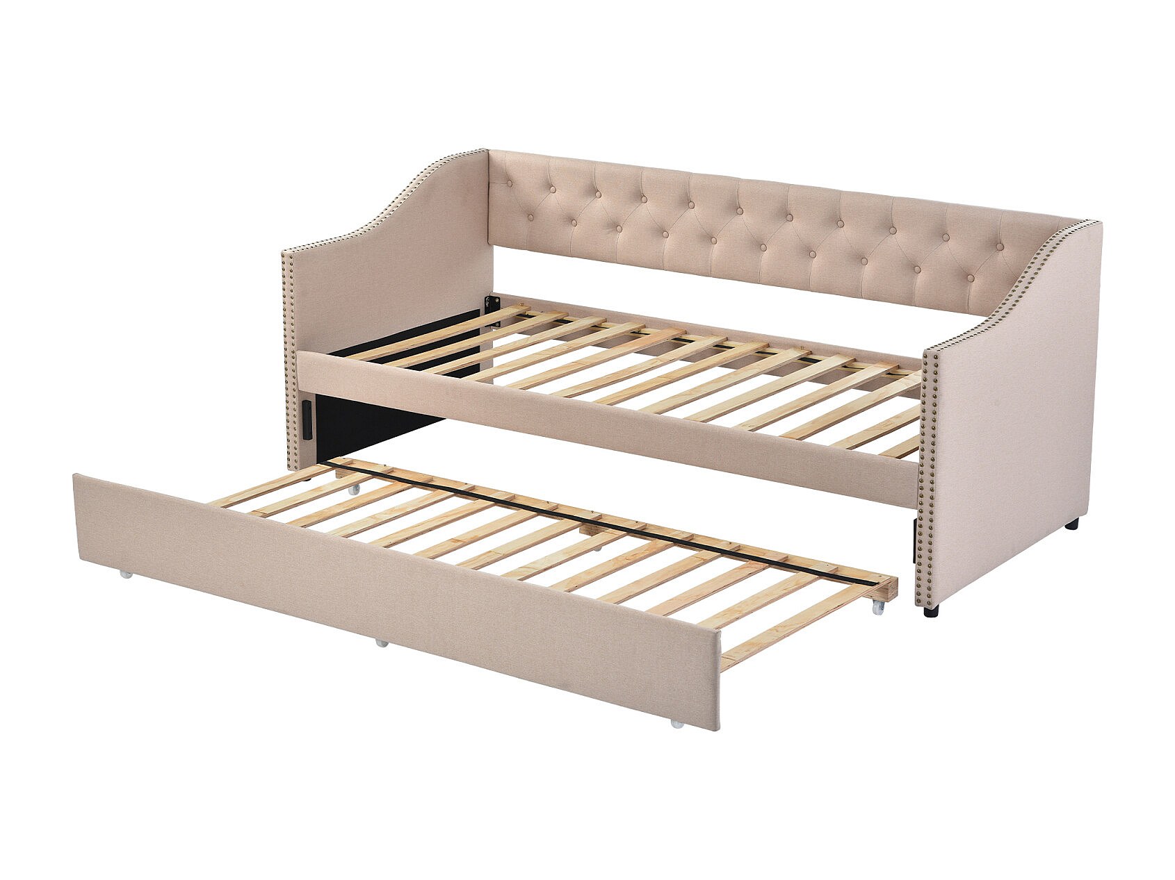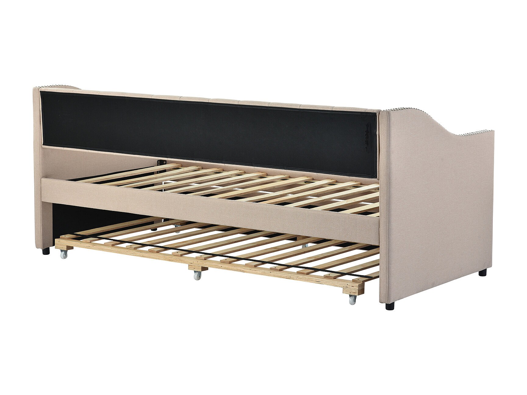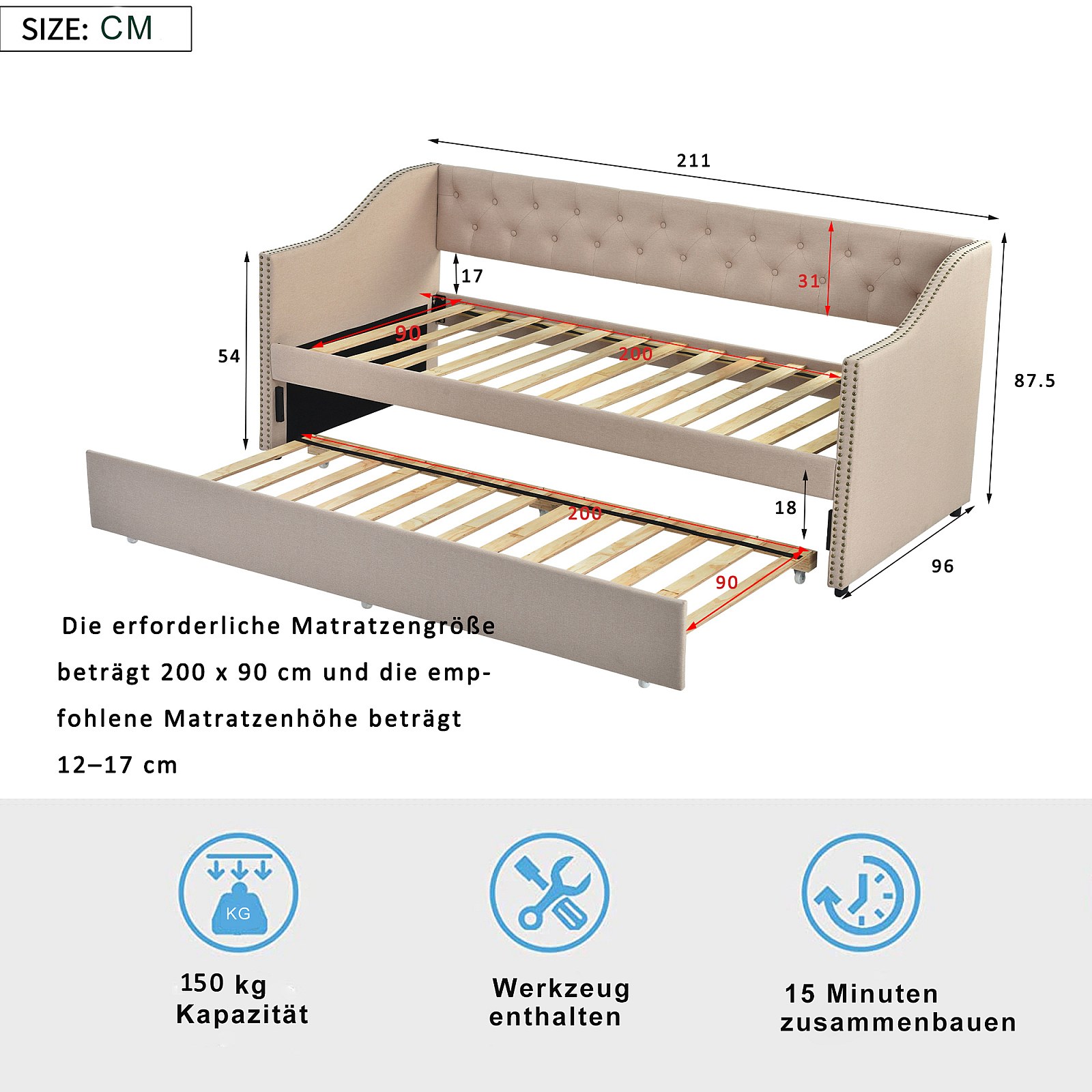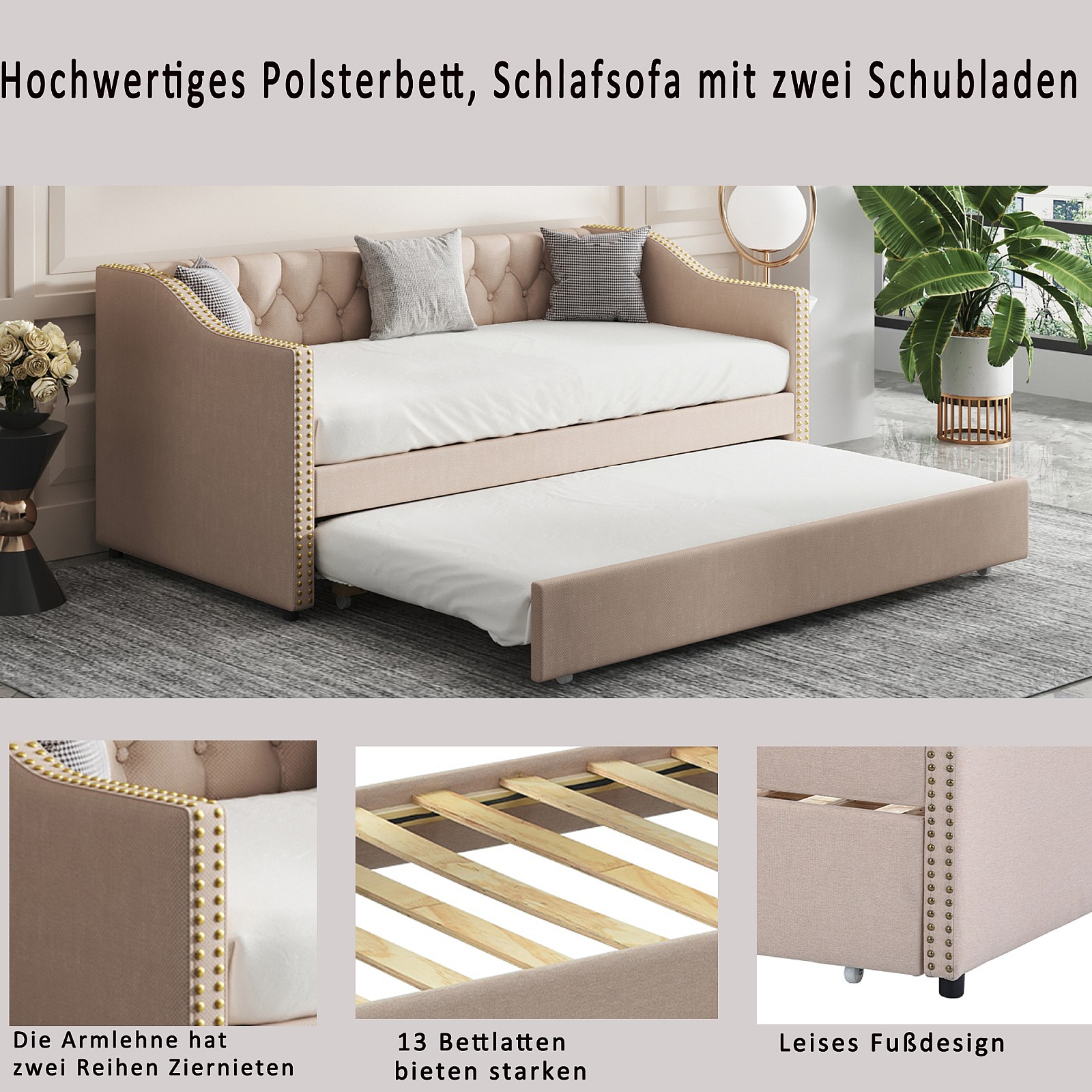 Canapé lit Convertible 90/180 x 200 cm, Canape lit 2 Places gigogne Bed avec sommier à Lattes, Multifonctionnel Cadre de Bed Rembourré 2 Personnes en Velours,Beige