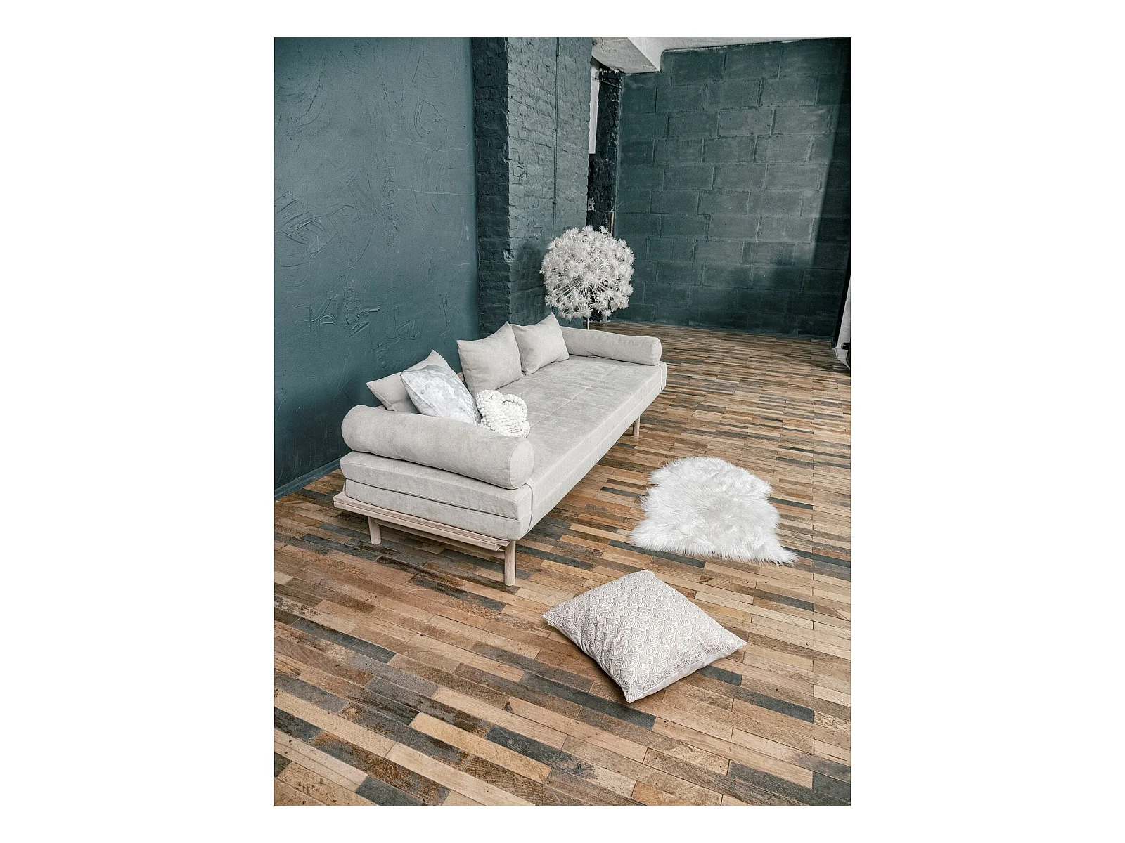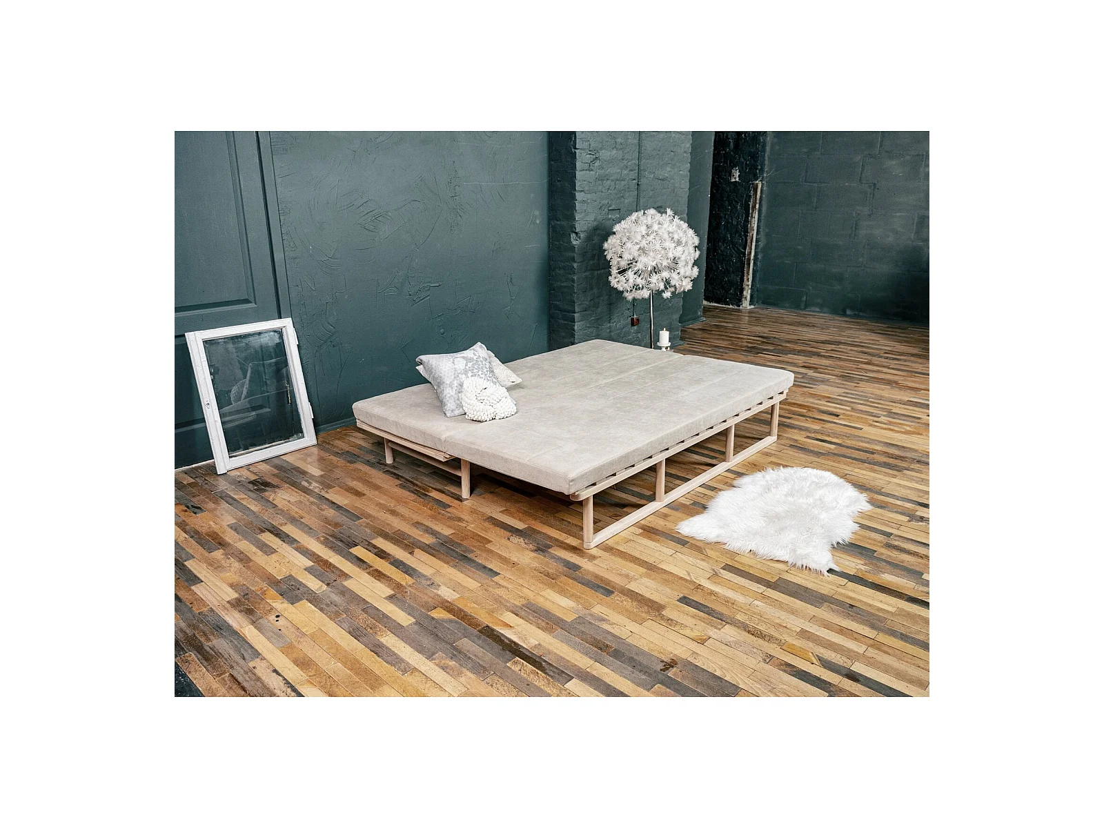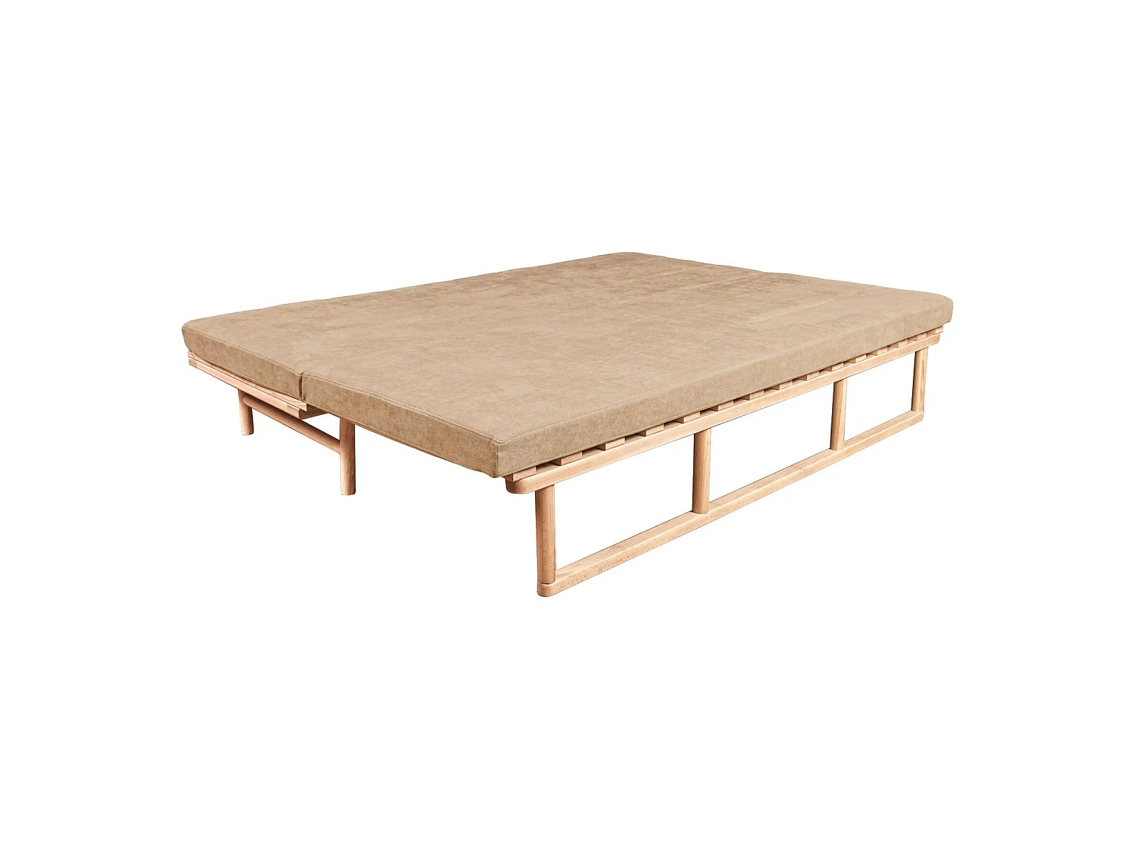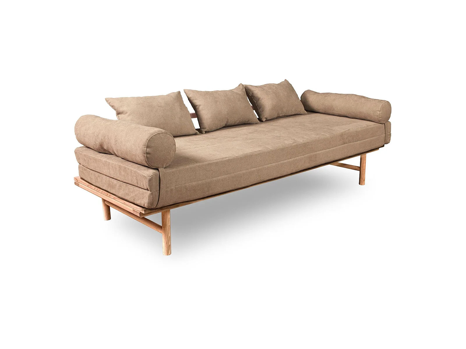Canapé Lit Convertible Design en Tissu Beige et Bois Beige