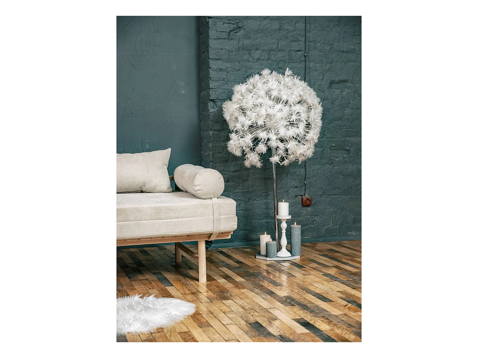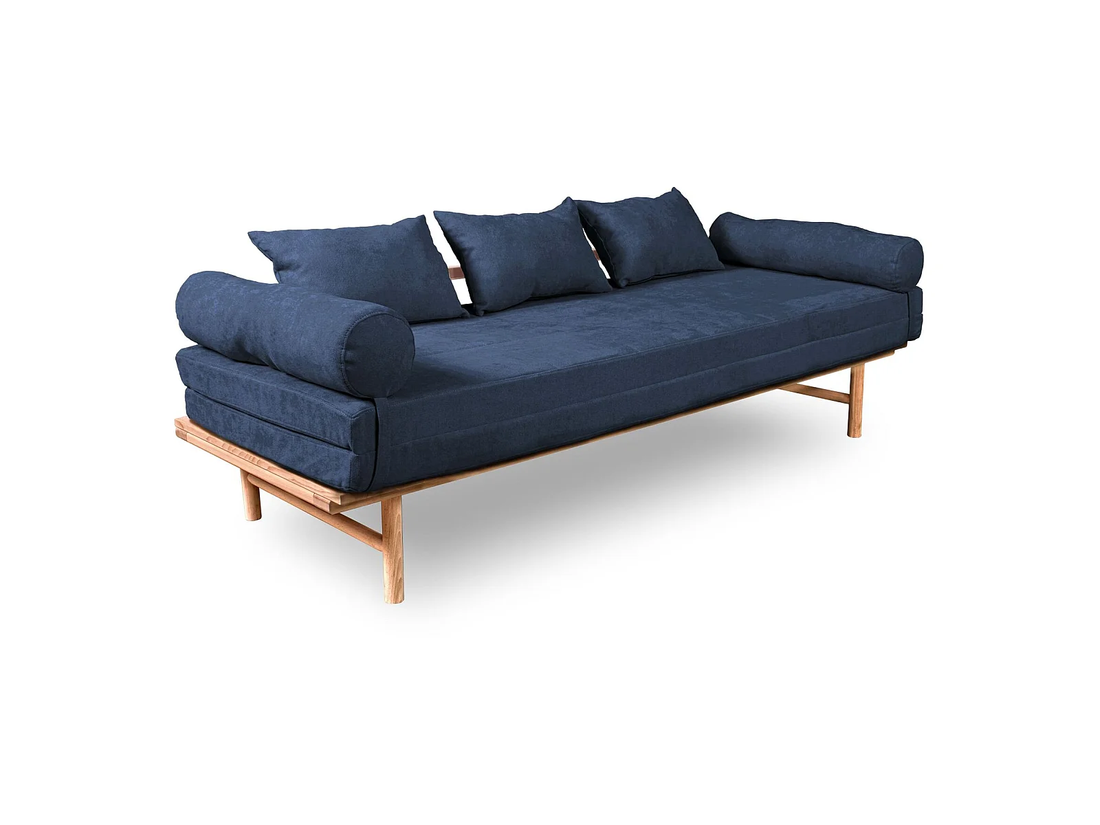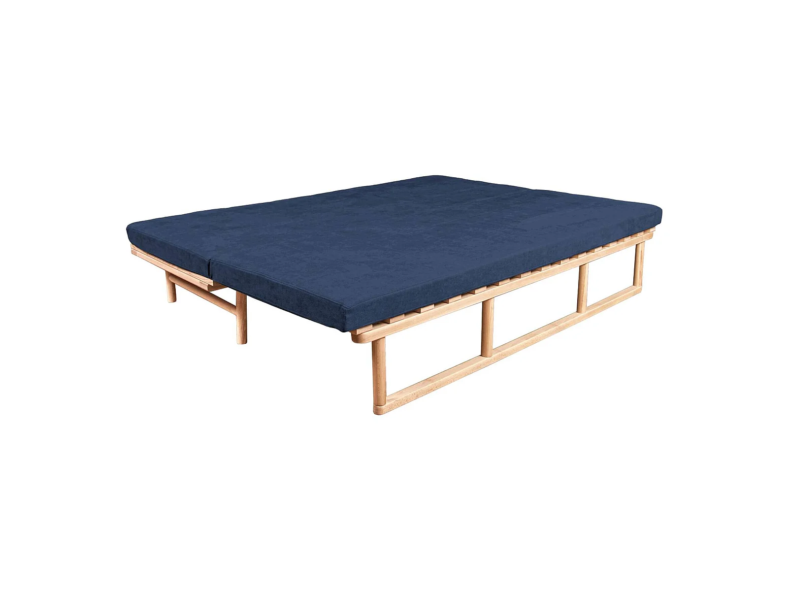 Canapé Lit Convertible Design en Tissu Beige et Bois Bleu