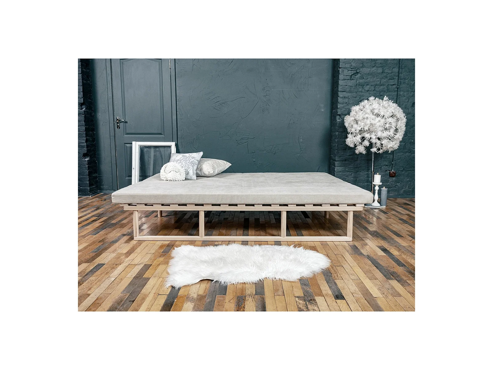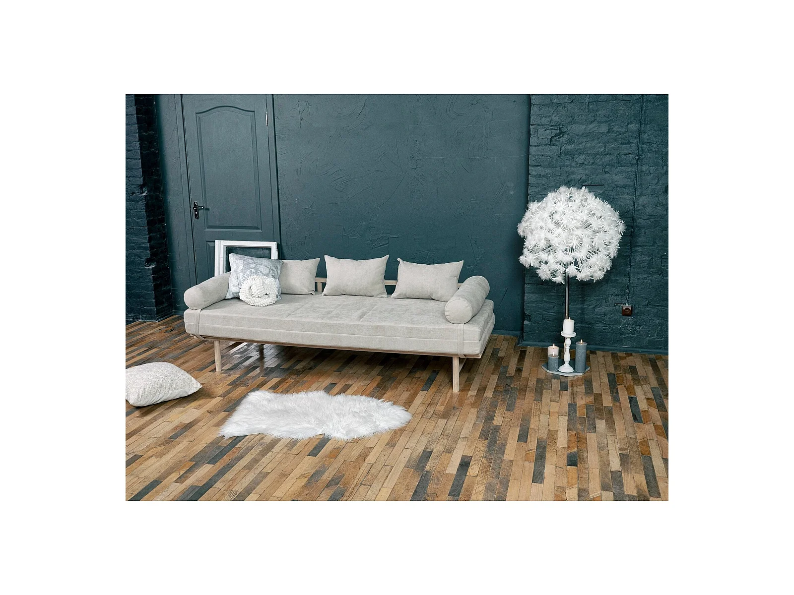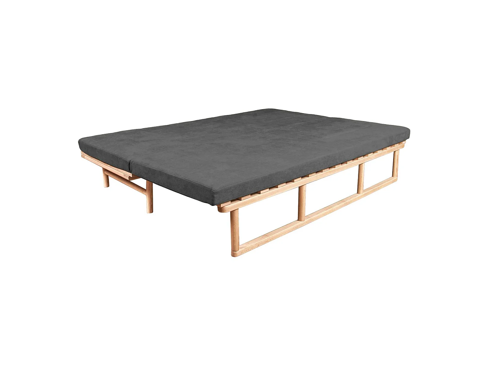 Canapé Lit Convertible Design en Tissu Beige et Bois Gris cendré