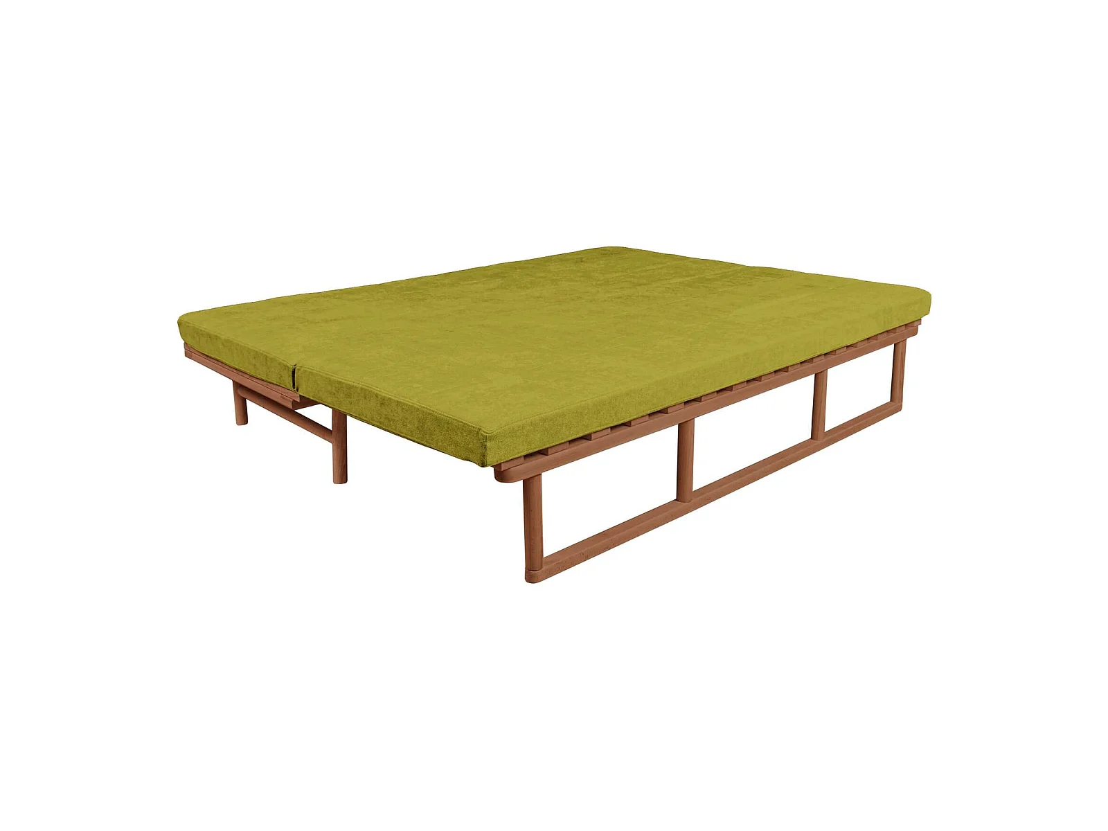 Canapé Lit Convertible Design en Tissu Beige et Bois Vert