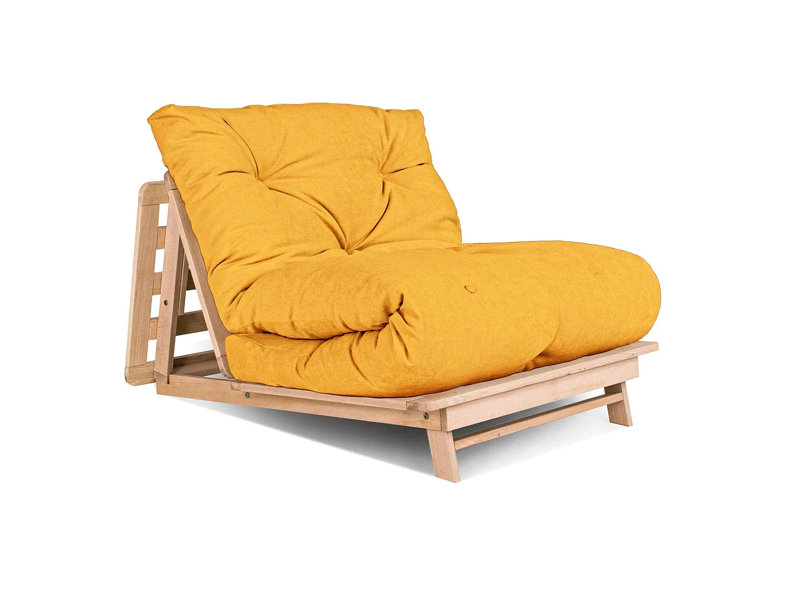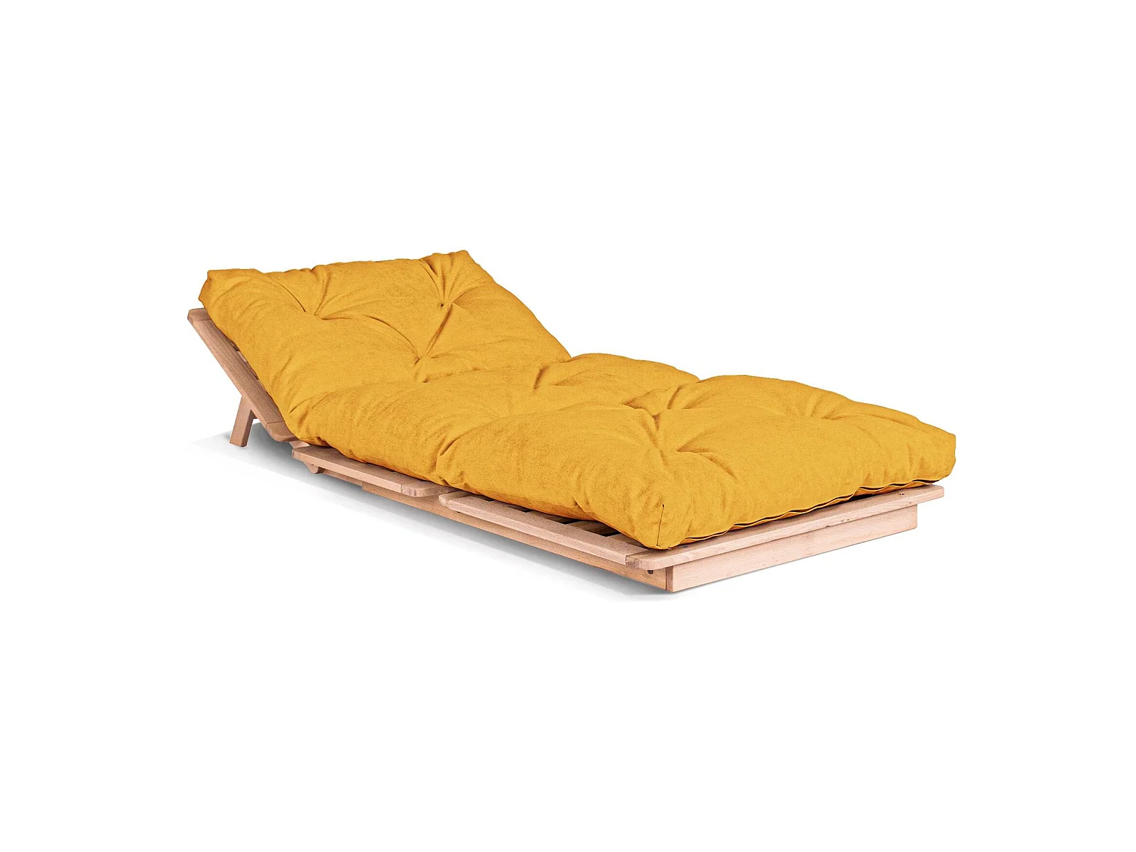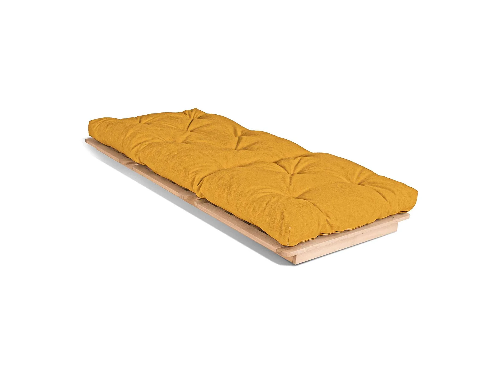 Canapé Lit Convertible en Bois avec Matelas Beige Confort Jaune