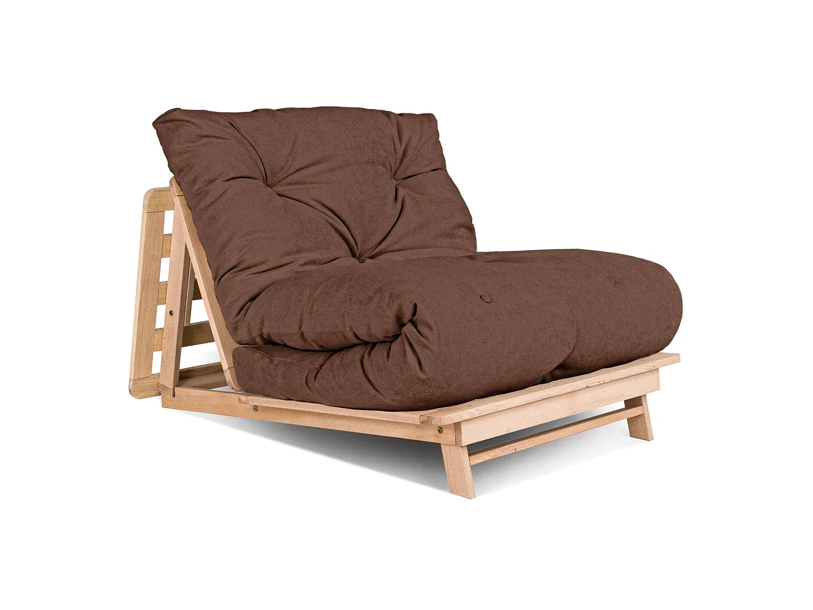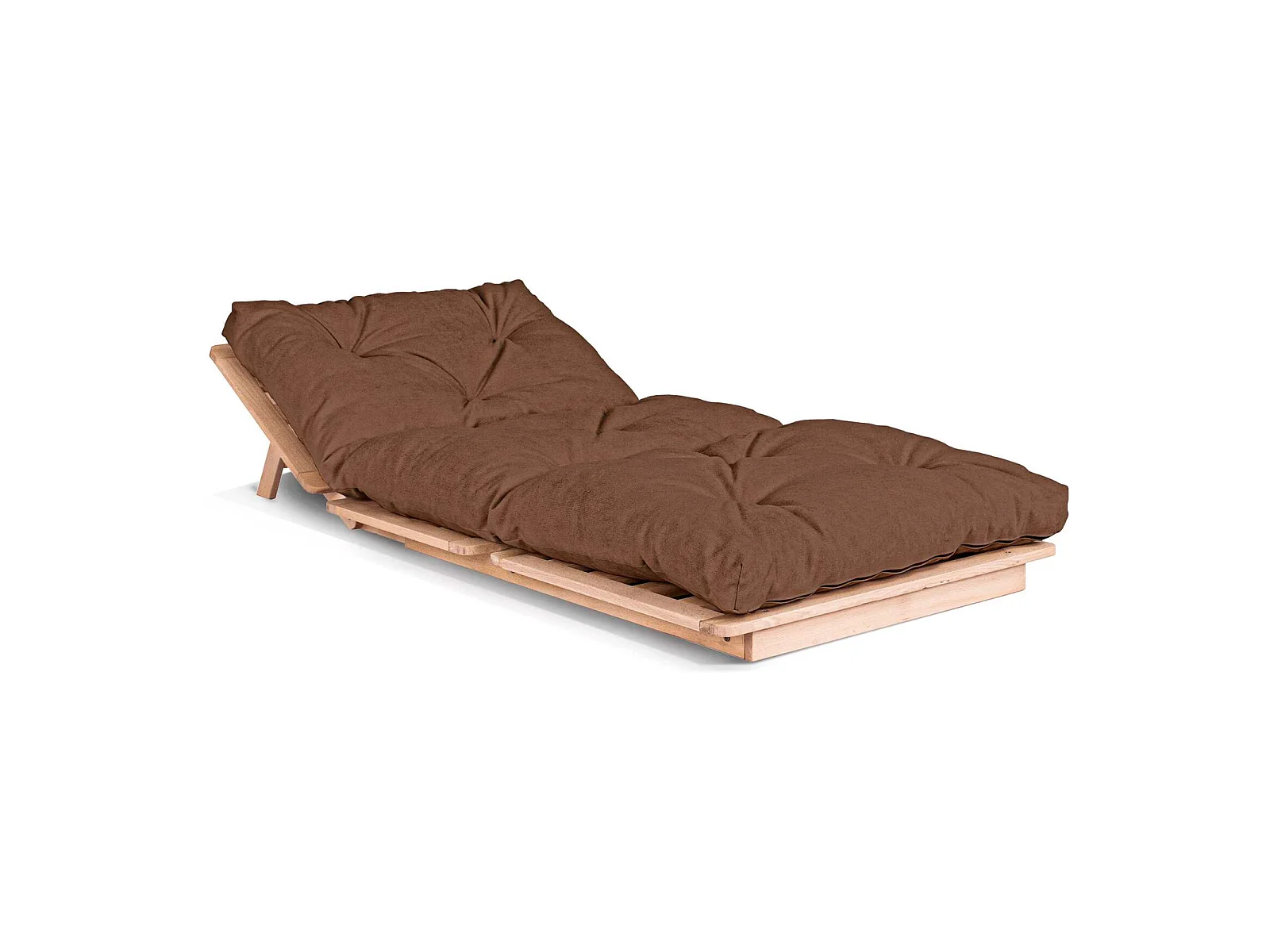 Canapé Lit Convertible en Bois avec Matelas Beige Confort Marron