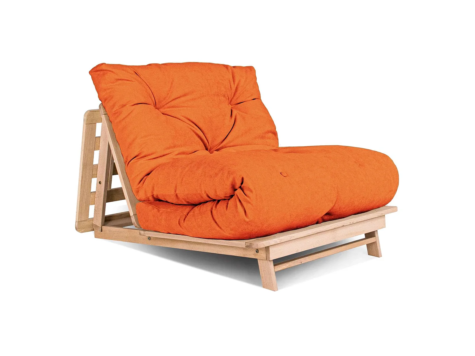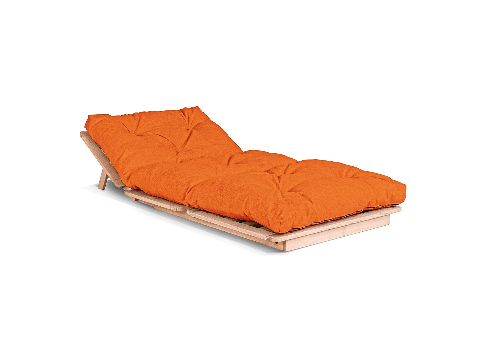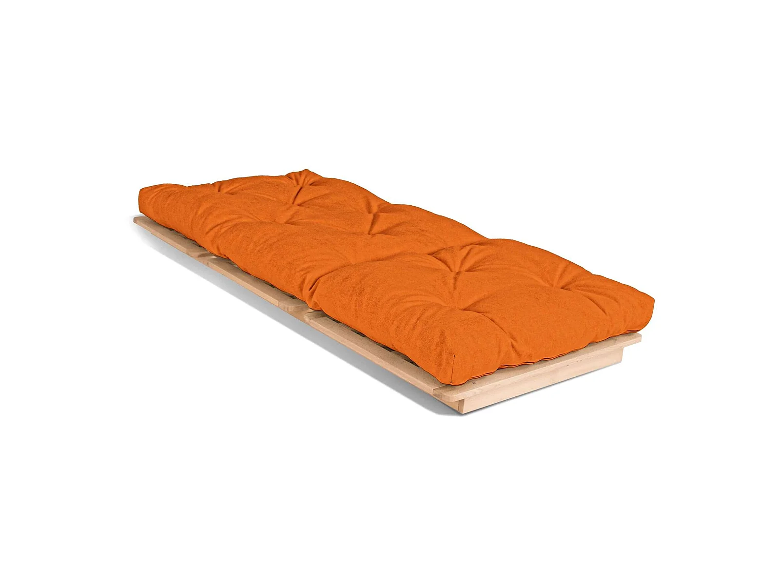 Canapé Lit Convertible en Bois avec Matelas Beige Confort Orange