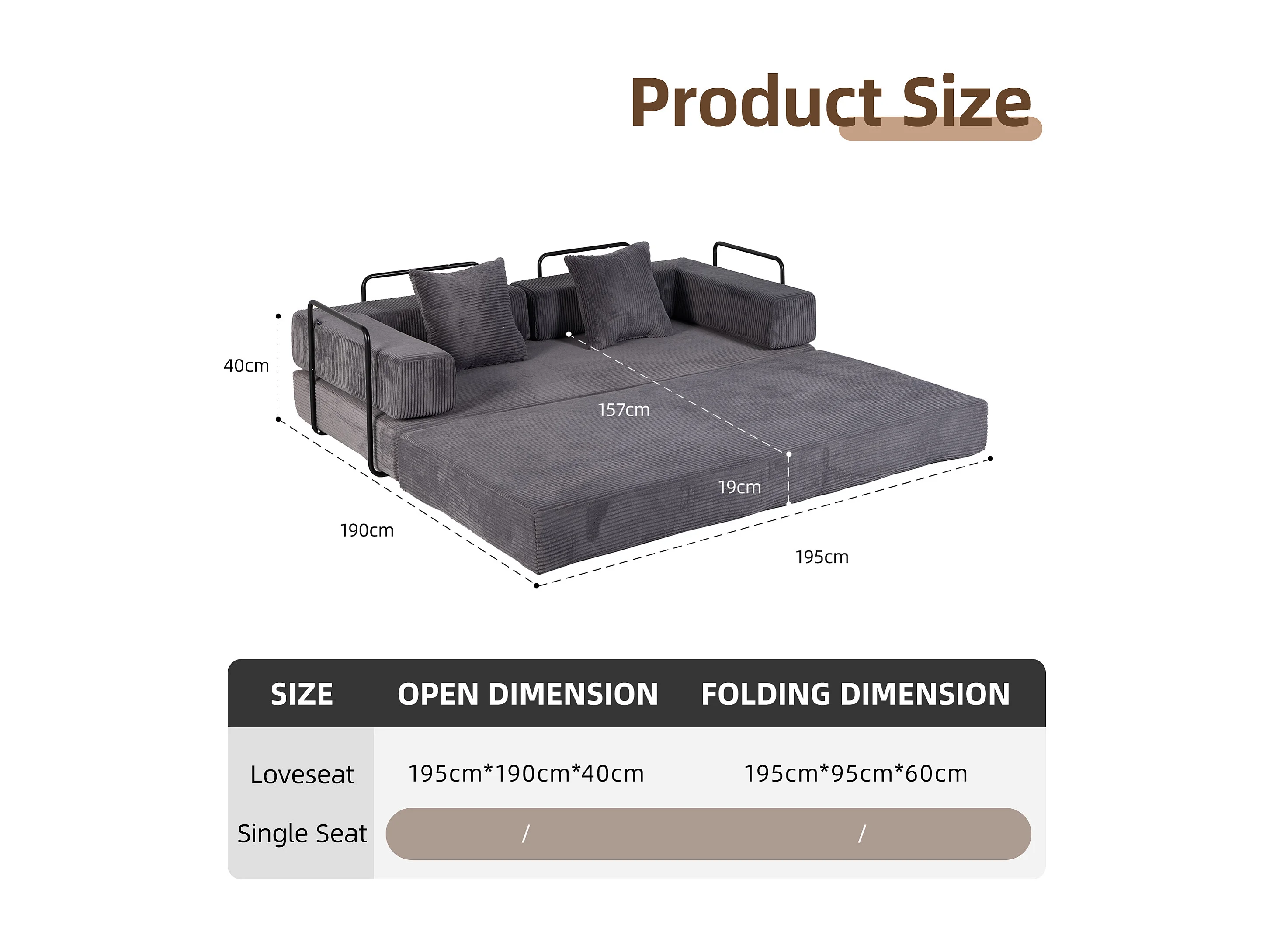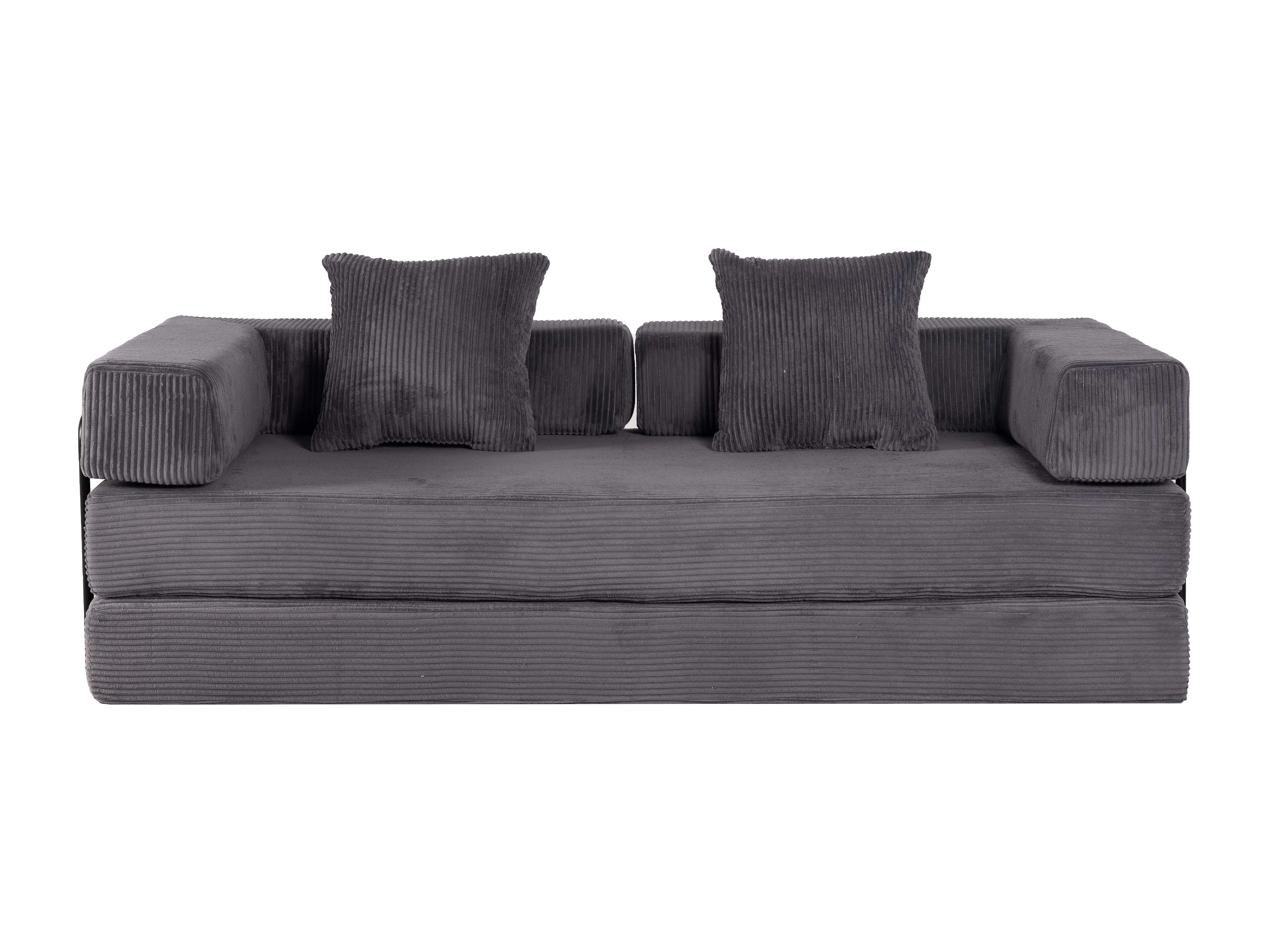 Canapé-lit convertible en velours côtelé, matelas pliant compact pour petits espaces, aucun assemblage requis, gris foncé