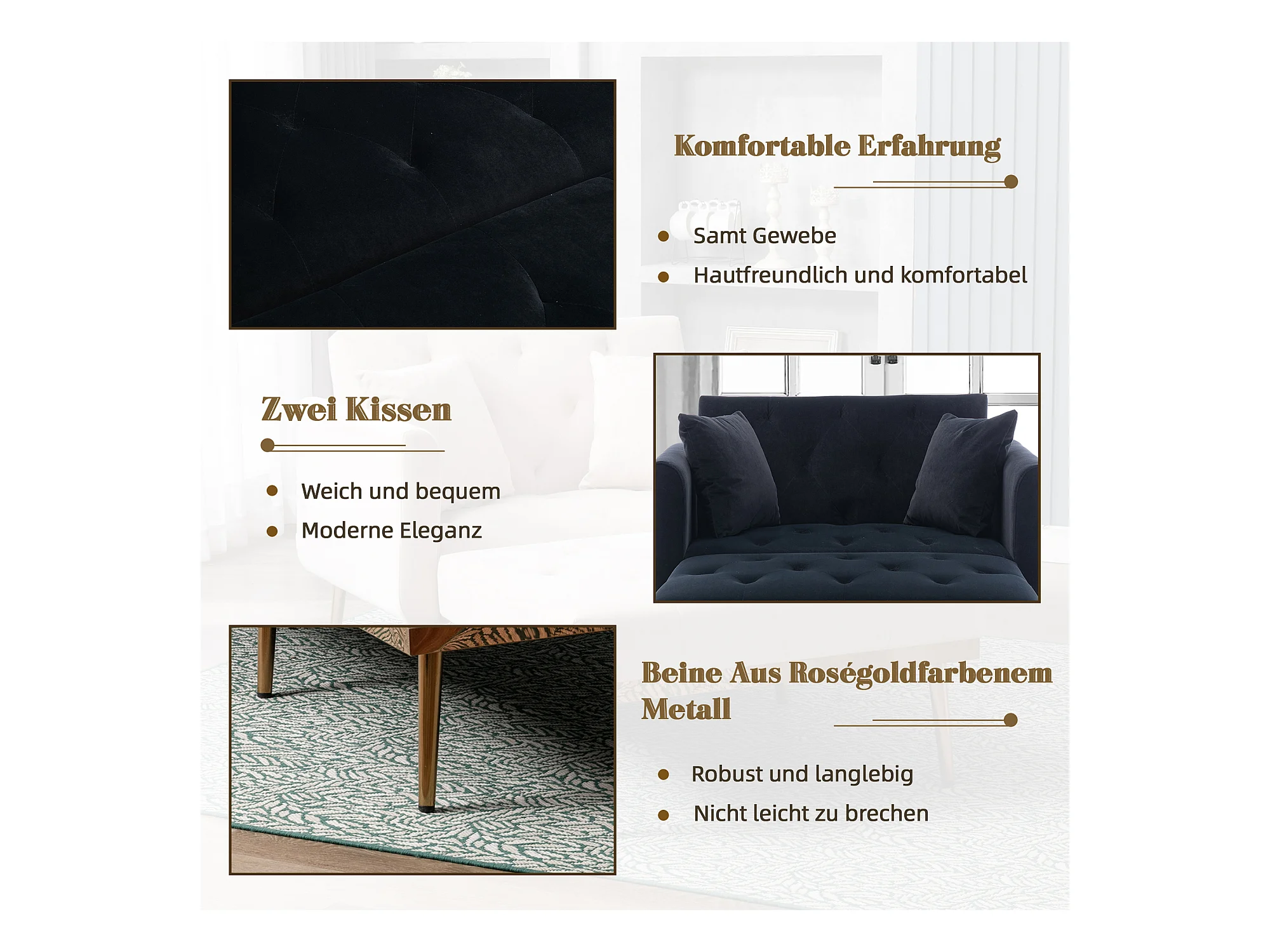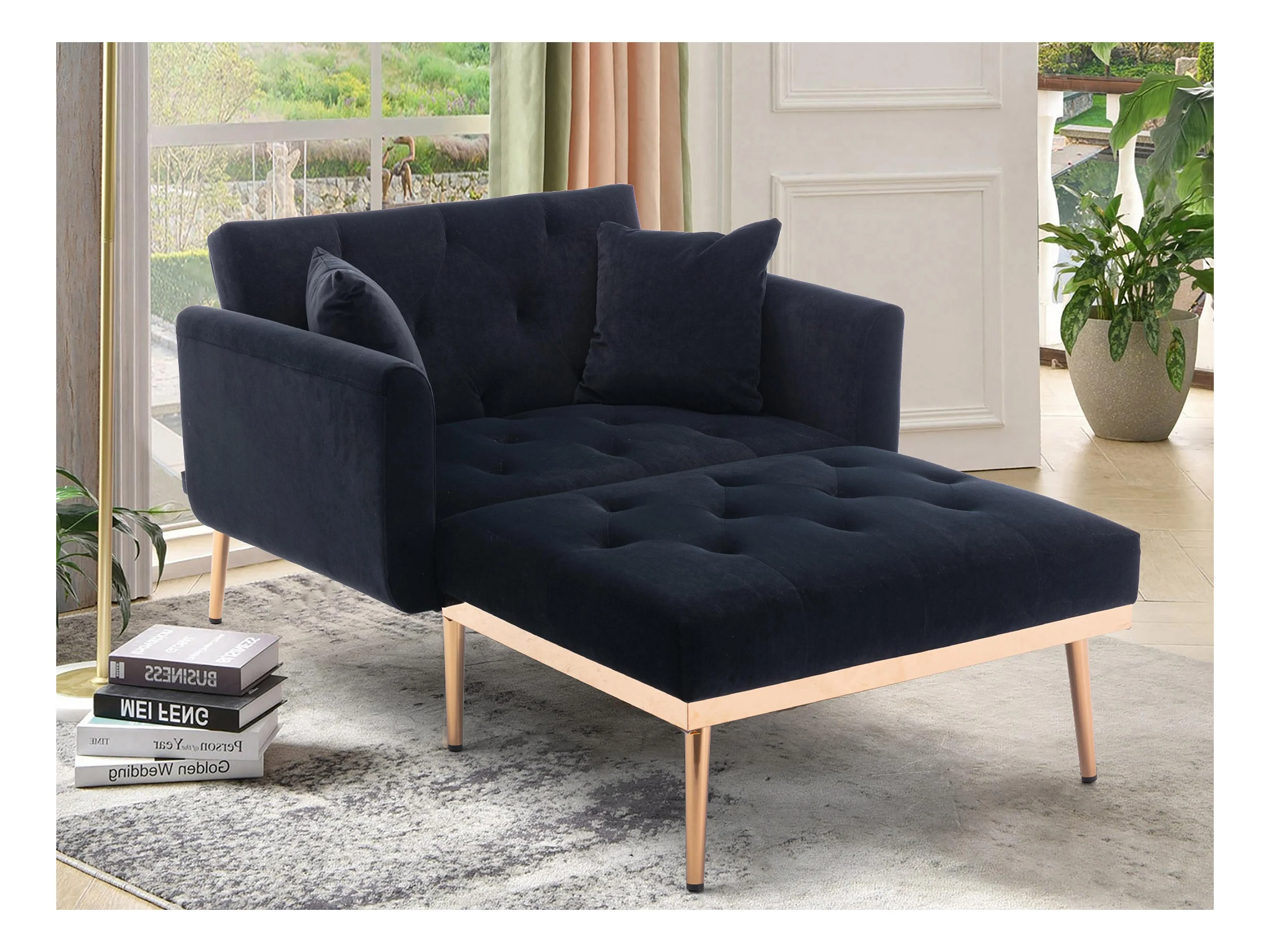 Canapé Convertible 2 Places en Velours côtelé Noir - Canapé Modern avec 2 Coussins - Dossier réglable - 165x90x77cm
