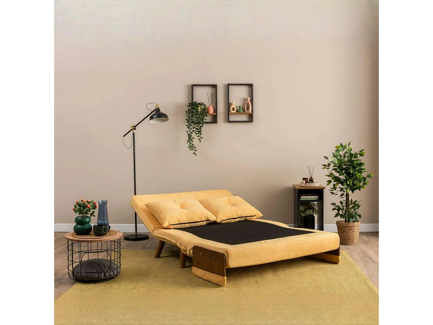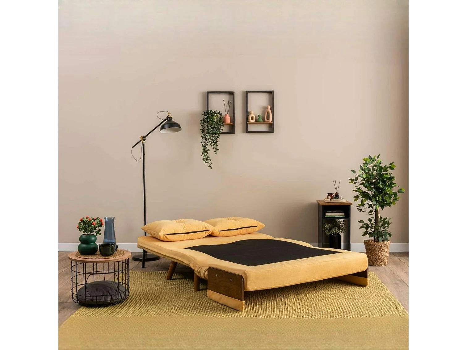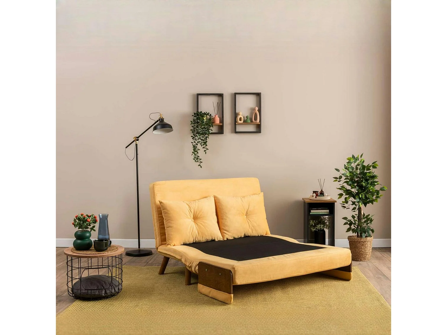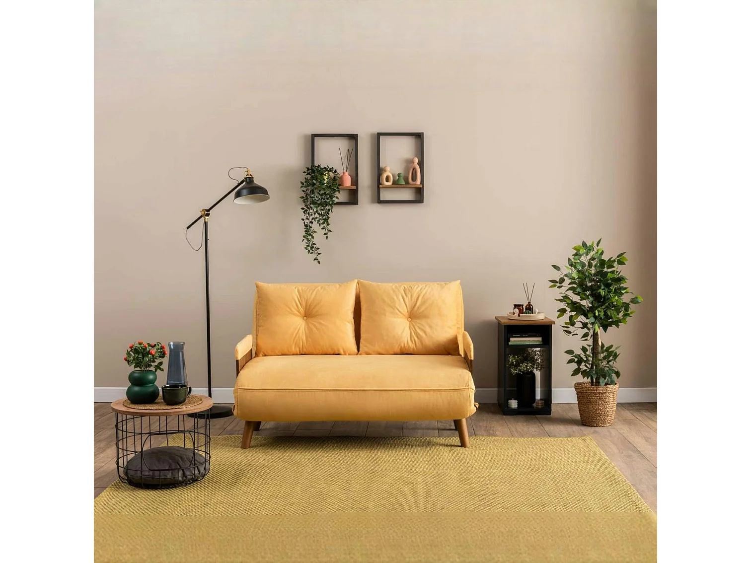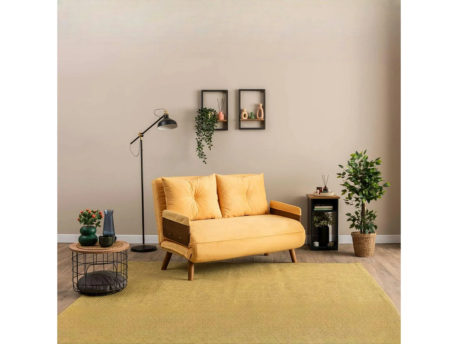 Canapé-lit d'appoint en velours jaune, 2 places LOJA