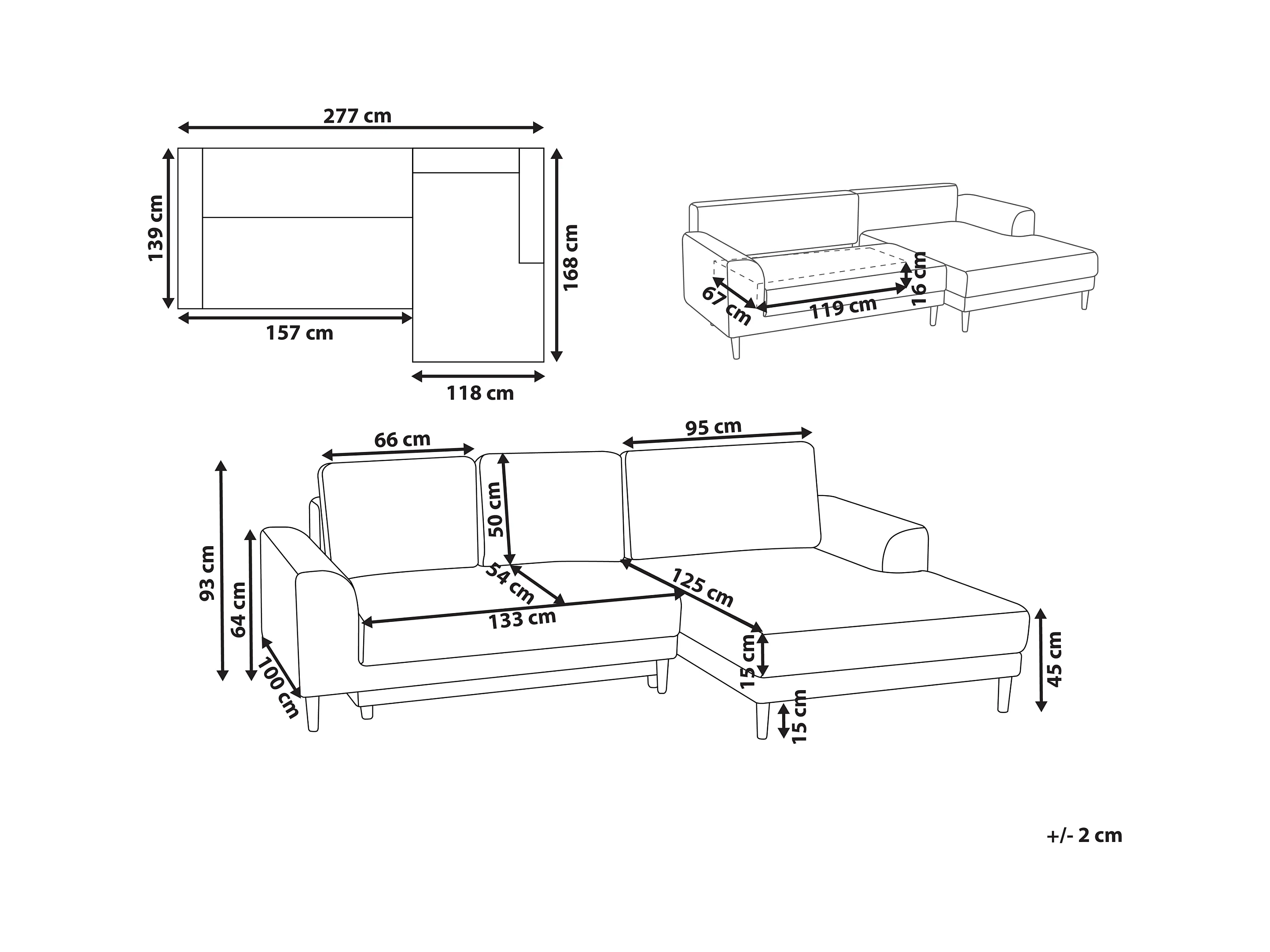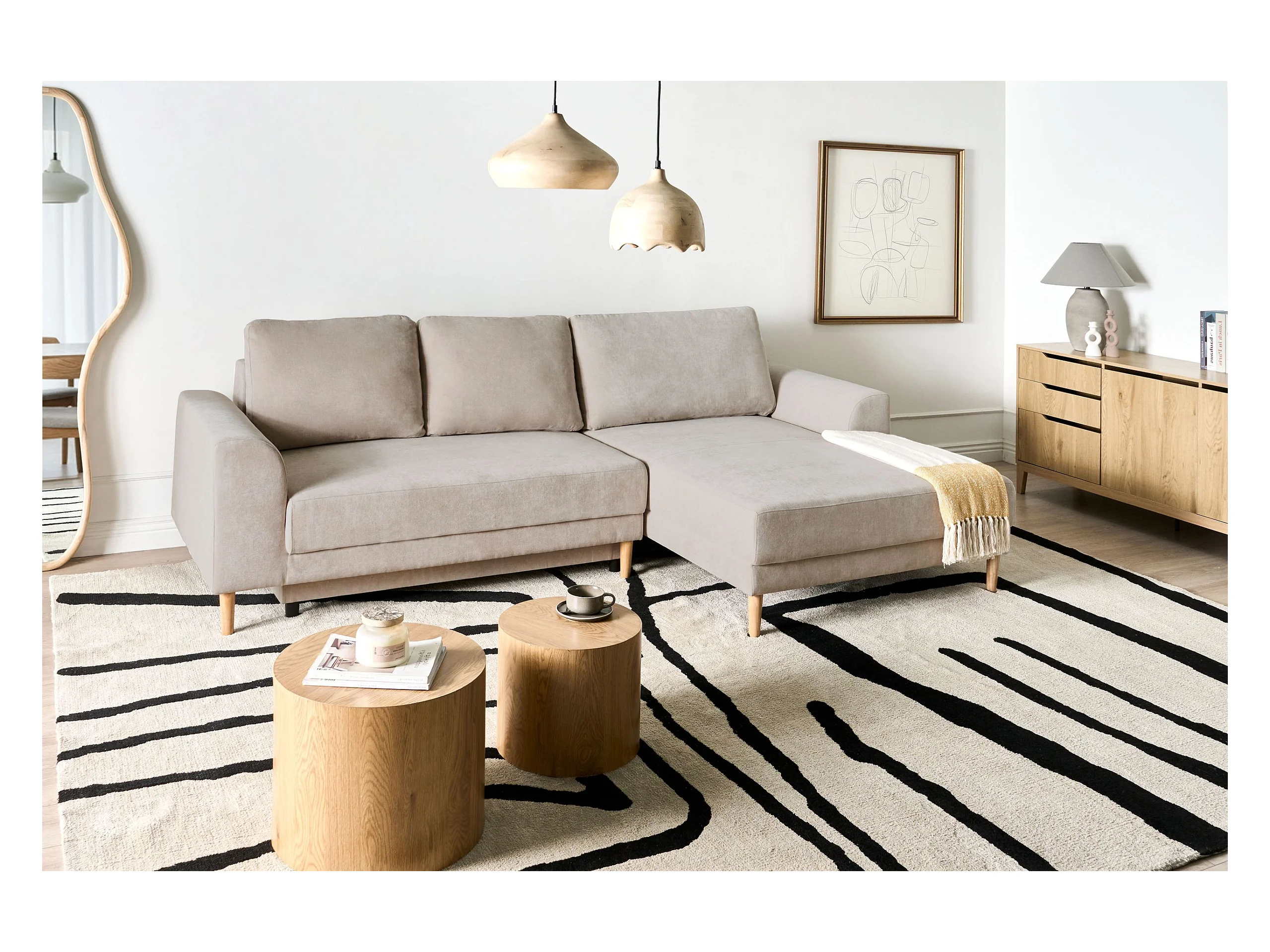 Canapé-lit d'angle 3 places NUBORG Tissu chenille Beige clair Côté droite