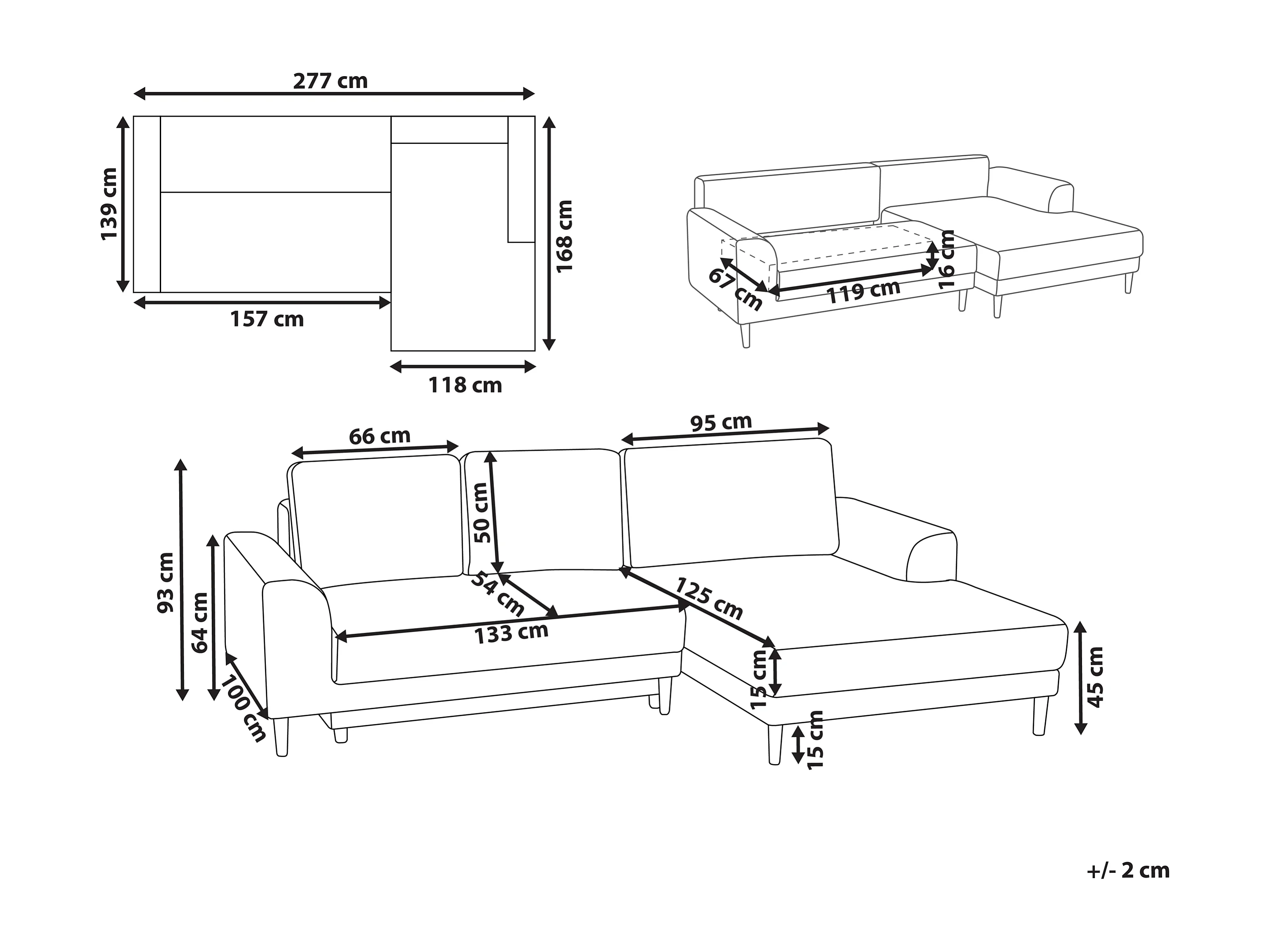 Canapé-lit d'angle 3 places NUBORG Tissu chenille Marron clair Côté gauche
