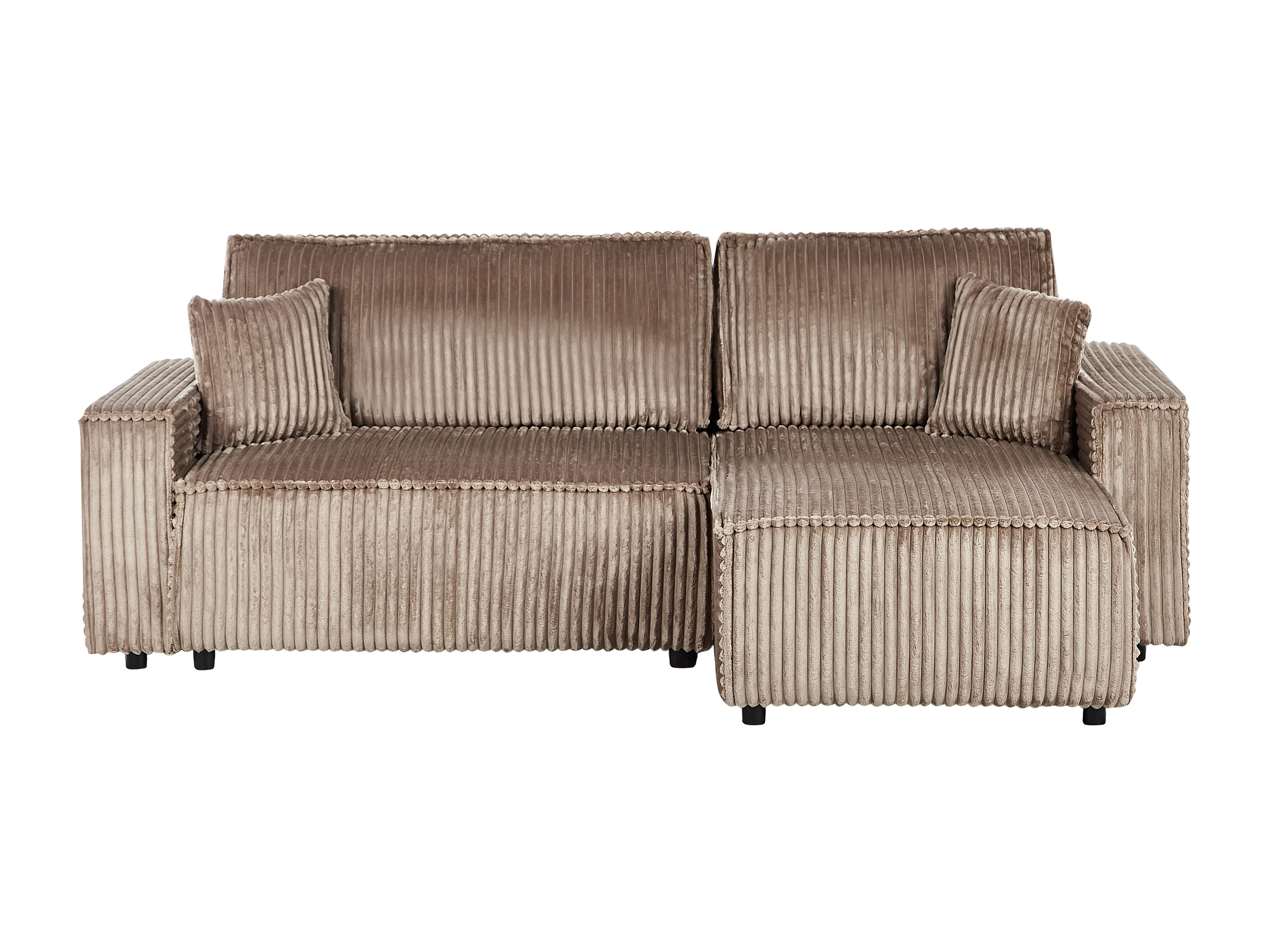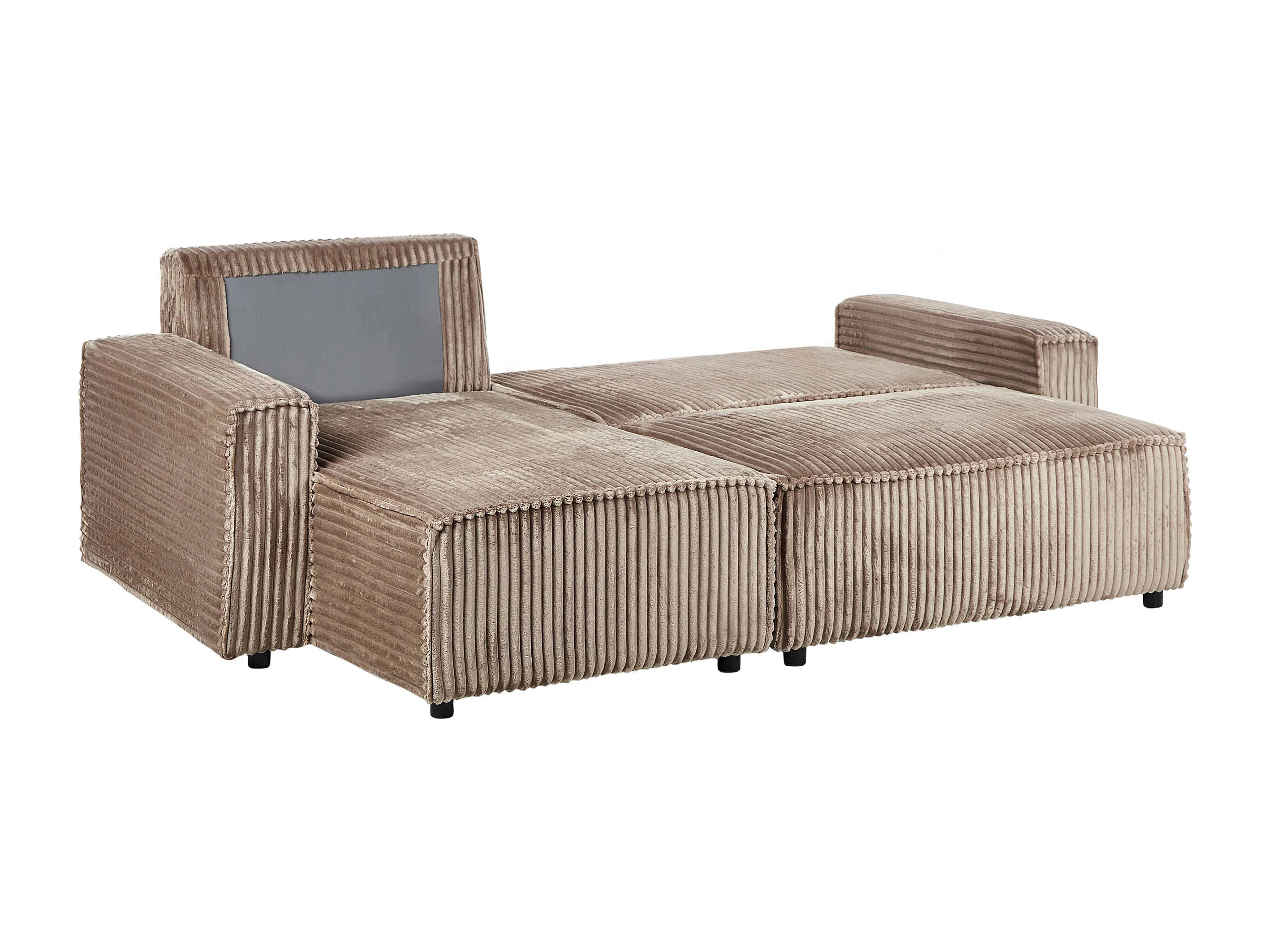 Canapé-lit d\'angle 3 places ABACKA Velours côtelé Marron clair avec rangement Côté droit