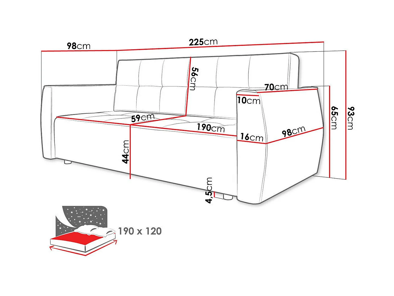 Canapé convertible Edinburg 107, Boîte de literie, 93x225x98cm