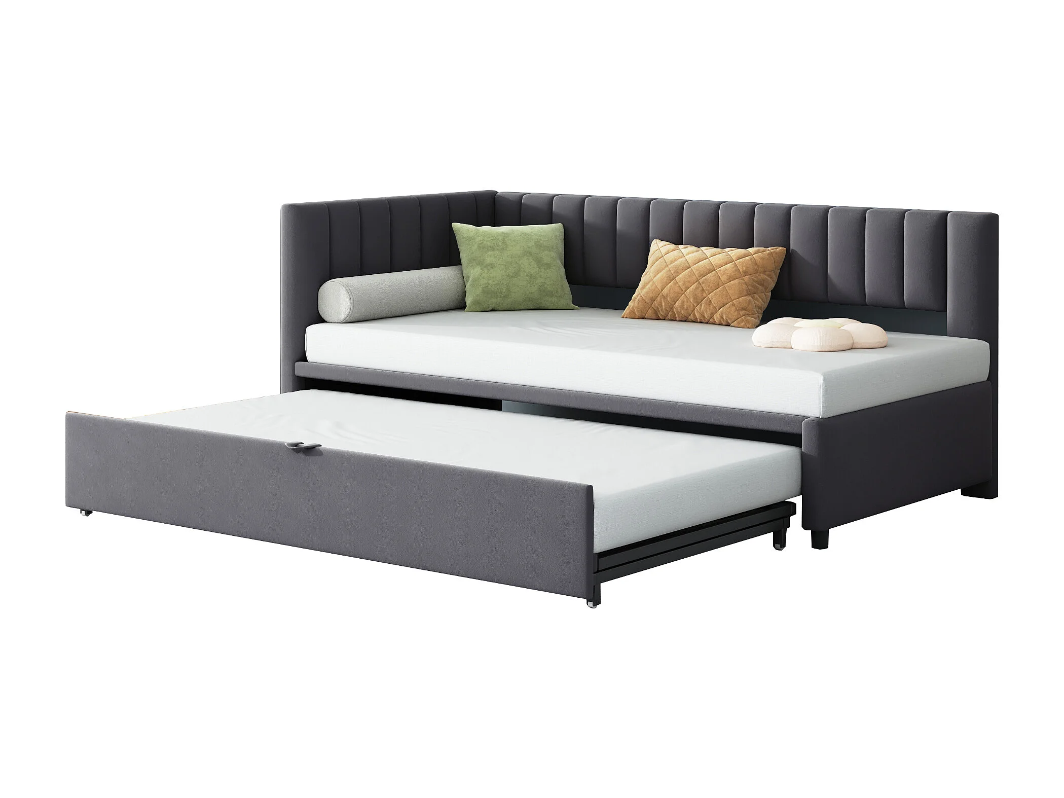Canapé-lit en L extensible 90/180x200 cm, velours gris, lit multifonction pratique pour enfant ou invité