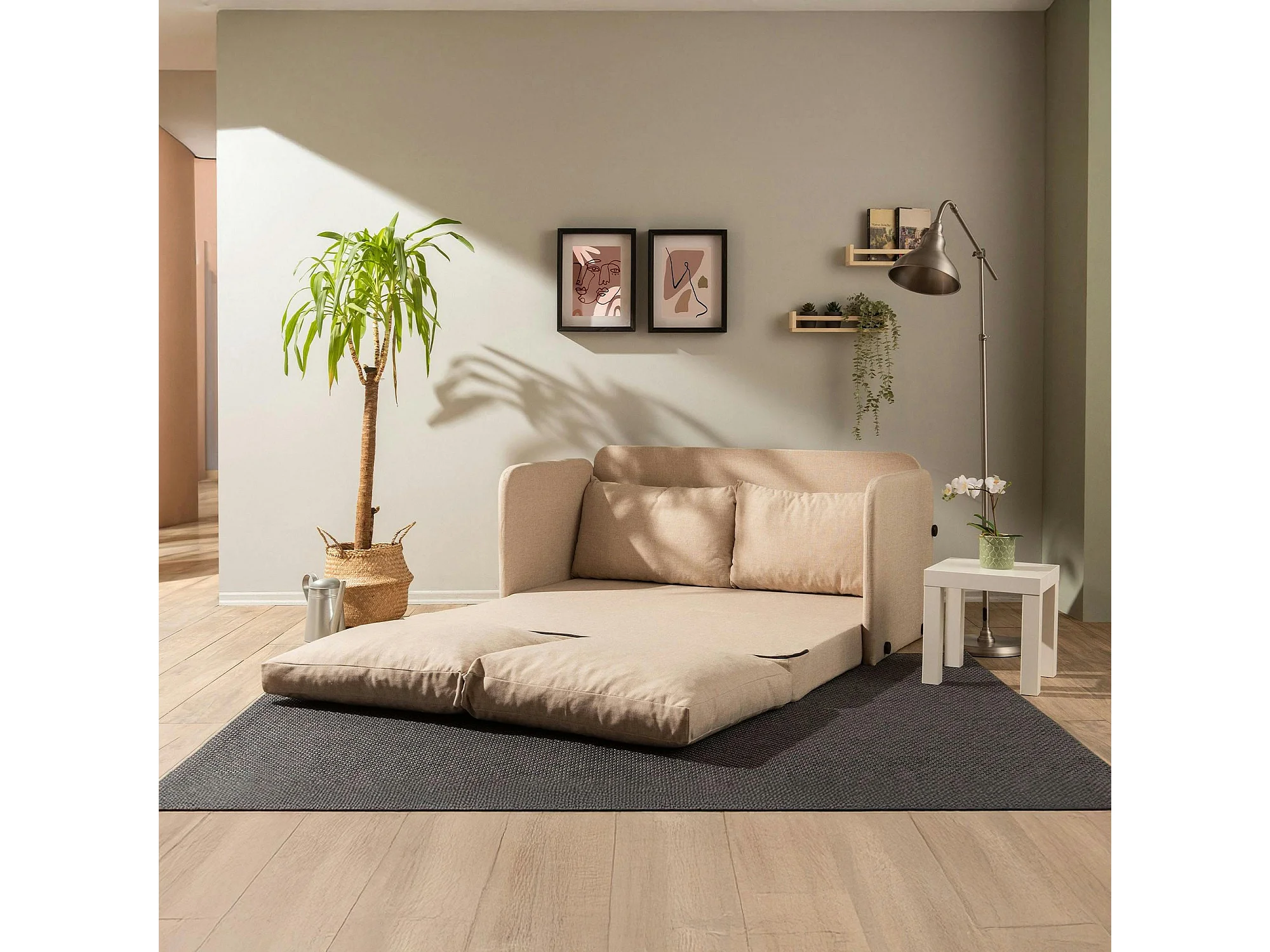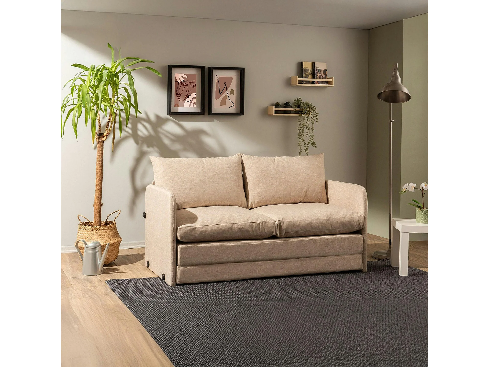 Canapé-lit en lin beige, 2 personnes 140 cm ORURO