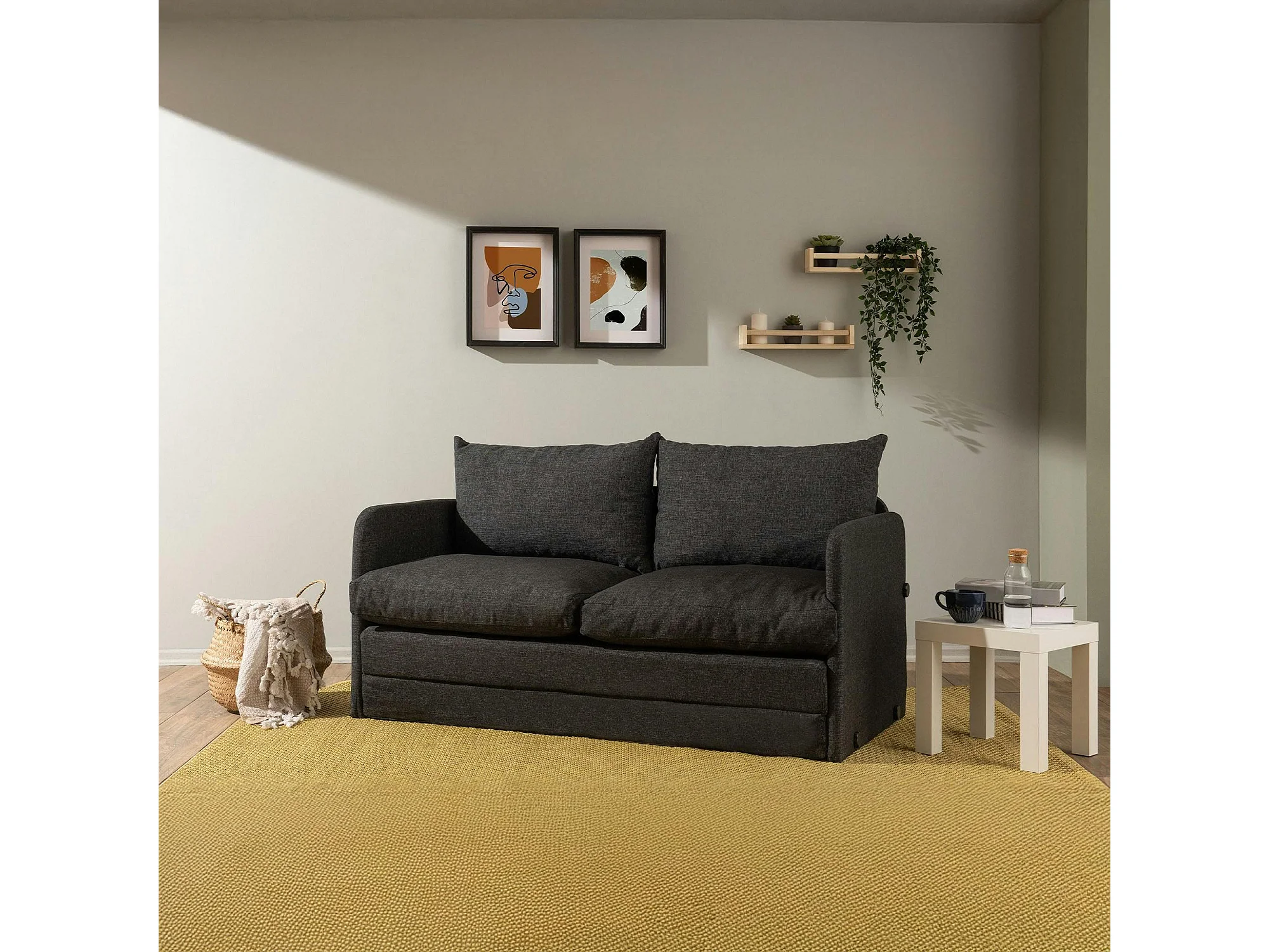 Canapé-lit en lin gris foncé, 2 personnes 140 cm ORURO