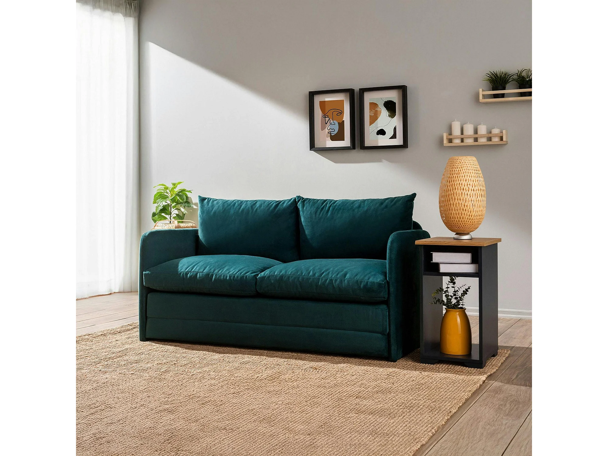 Canapé-lit en tissu bleu lagon, 2 personnes 140 cm ORURO