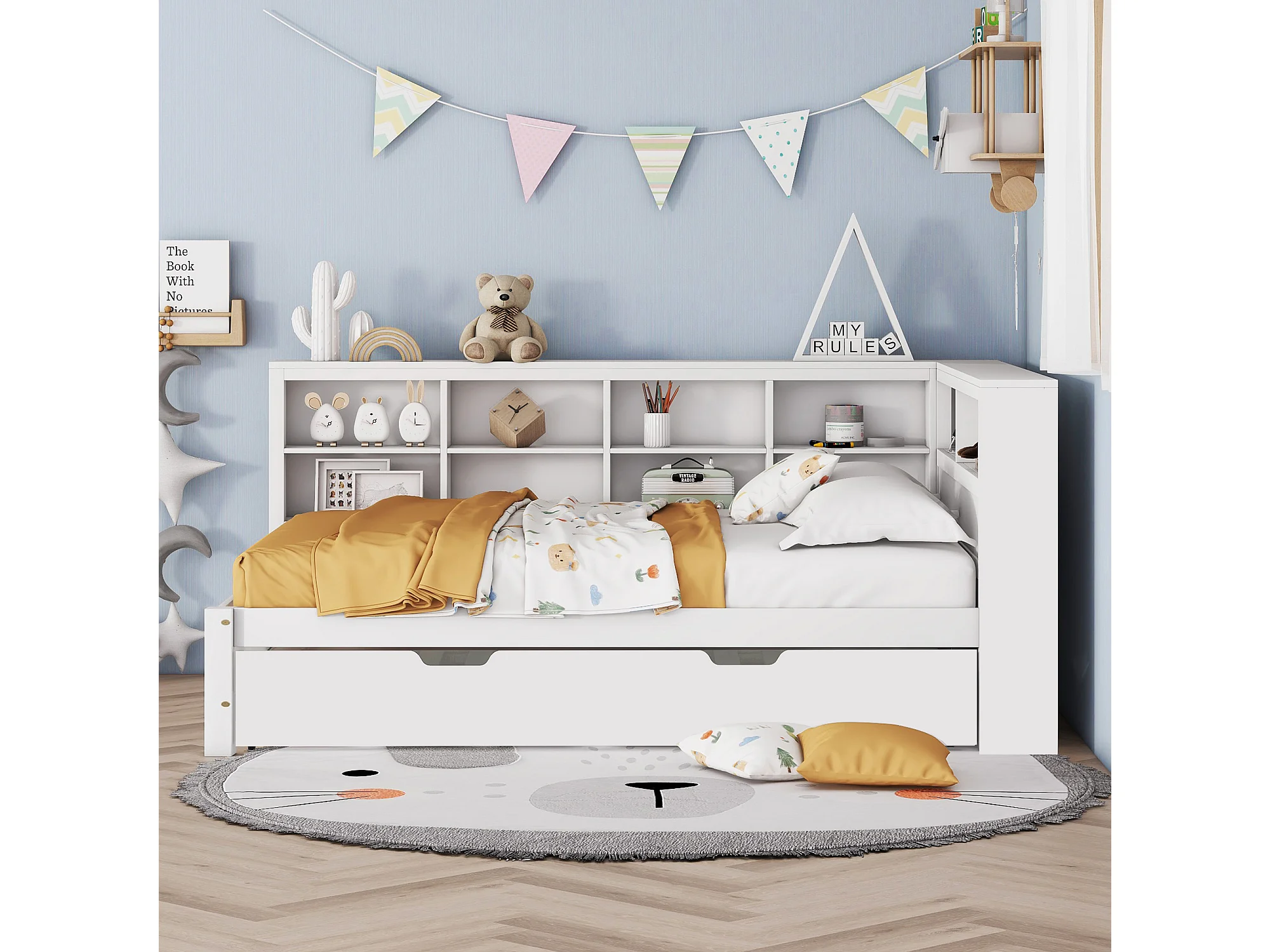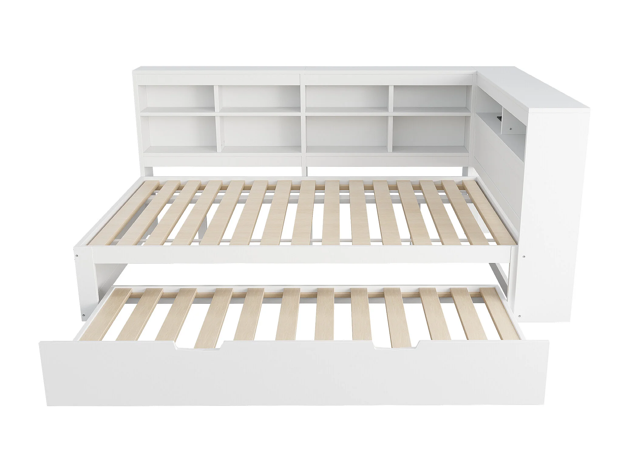 Canapé-lit enfant 140 x 200 cm avec lit gigogne 90 x 190 cm - avec USB et nombreux rangements - bois - blanc