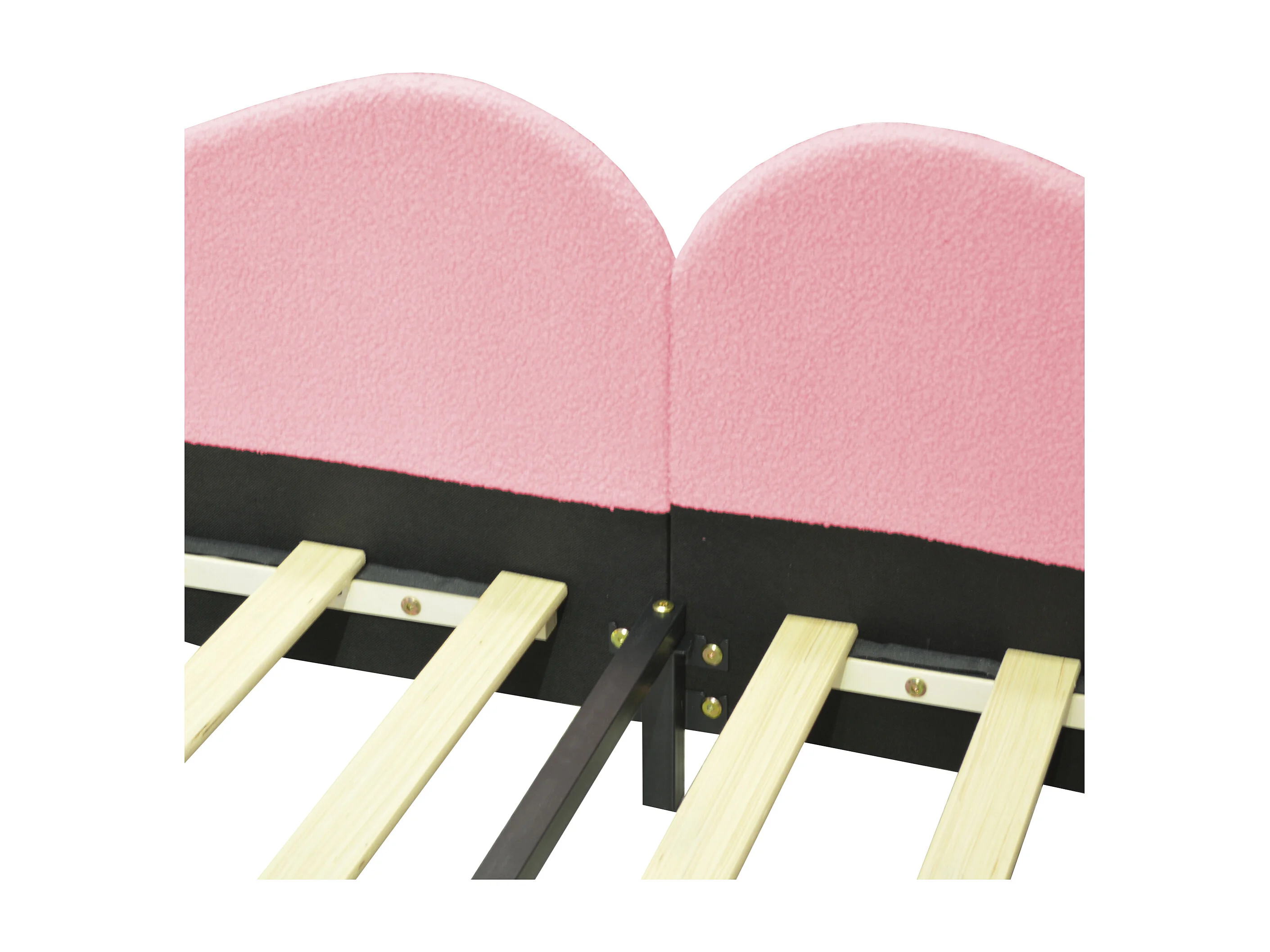Canapé-lit enfant 90x200 cm, lit doux avec dossier et accoudoirs en tissu teddy rose(sans matelas)
