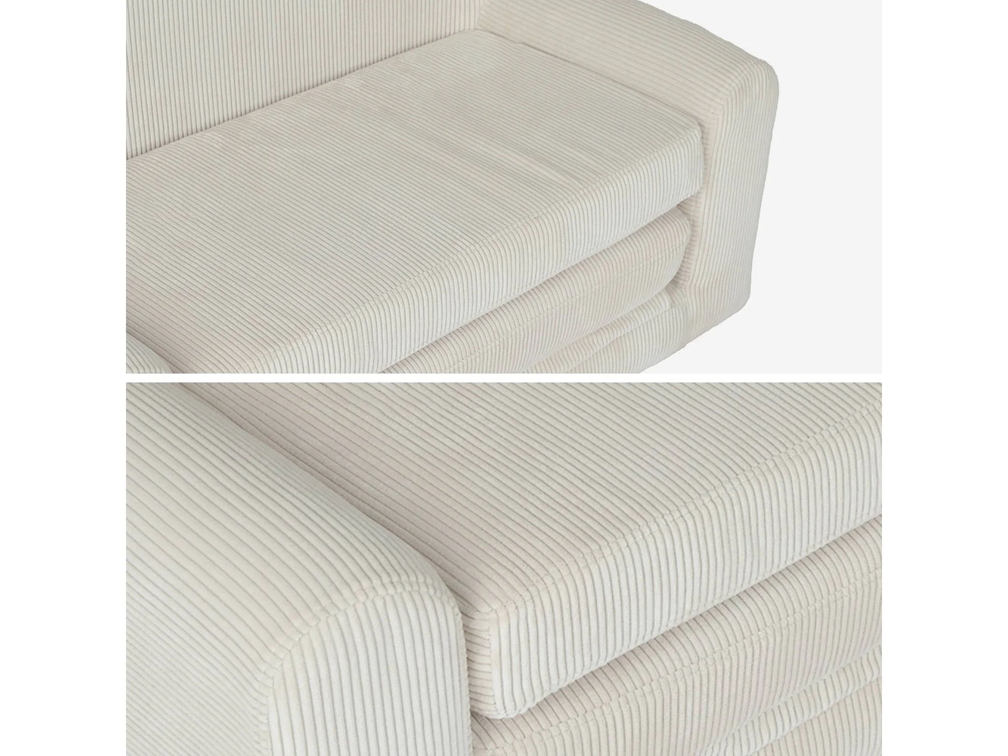 Canapé lit enfant en velours côtelé dépliable. couleur crème. L 90 x P 43 x H 51.5 cm